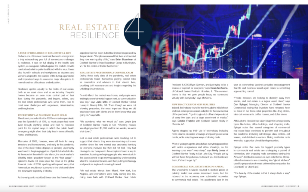 “Ciò che era iniziato con una grande promessa si è poi quasi fermato – si legge nell’editoriale di Homes & Estates” che introduce il rapporto – (ma ora) è tornato alle stelle quando le case hanno preso il centro della scena nella vita delle persone. È difficile riassumere un anno del genere in una parola, ma il Report 2021 di Coldwell Banker Global Luxury, ha pensato al termine “reimmaginazione”.”