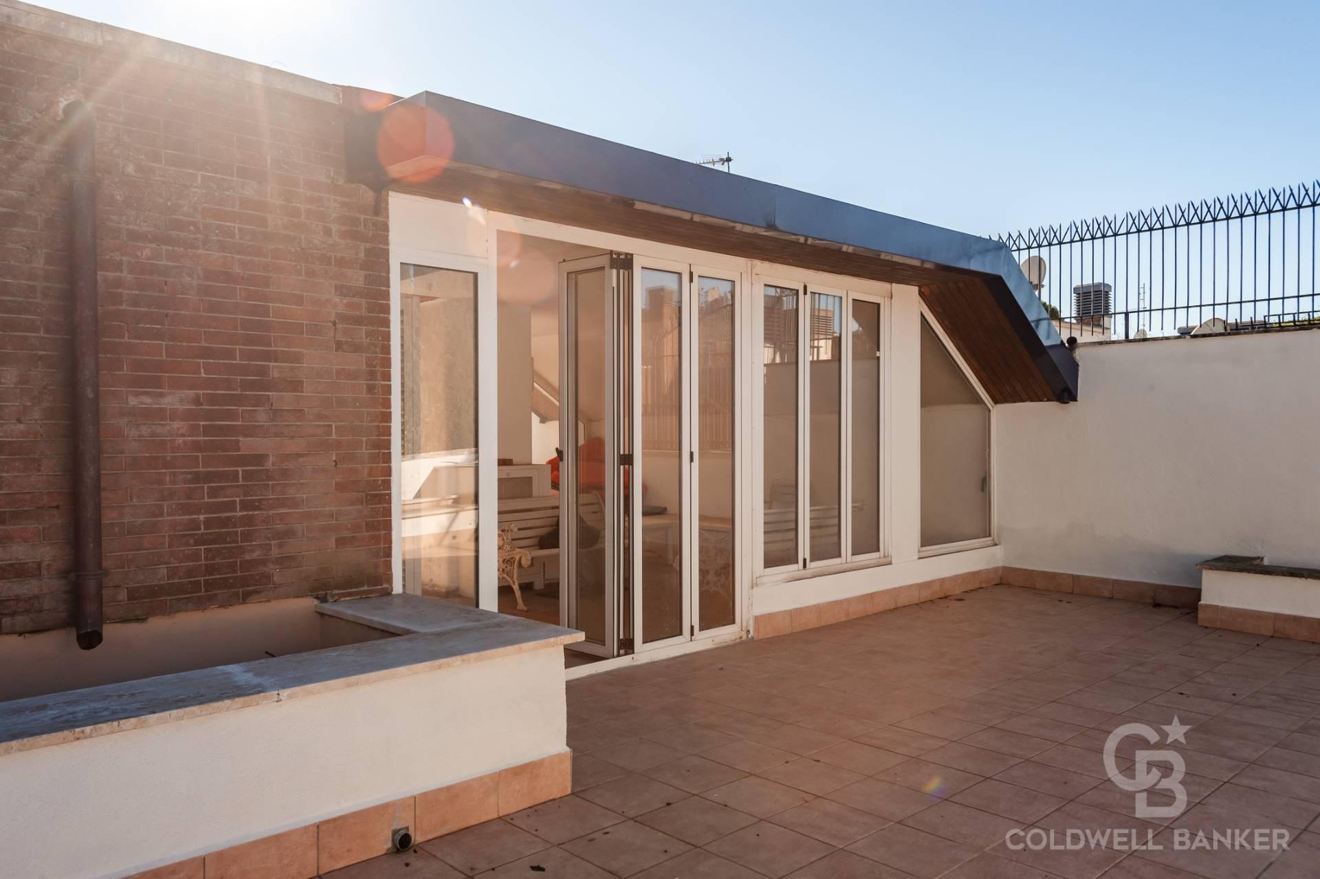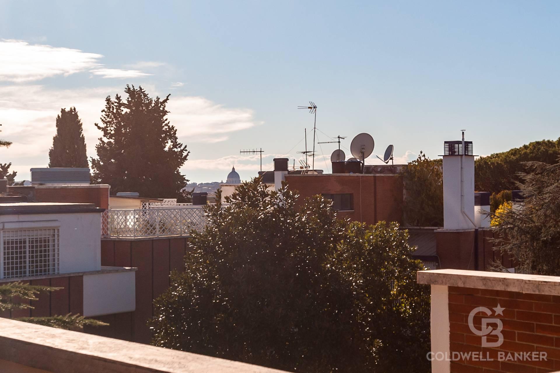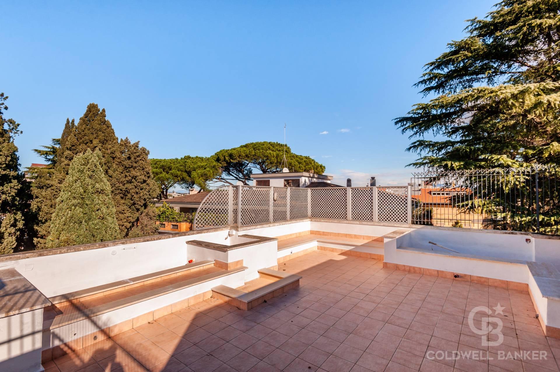 Al piano superattico, raggiunto da scala interna, si trovano: due immense terrazze panoramiche divise da una parte coperta, chiusa da vetrate, e una incantevole cucina da esterno in muratura servita da un montacarichi. La vista qui spazia da San Pietro ai Castelli Romani, dal Terminillo all’Auditorium.