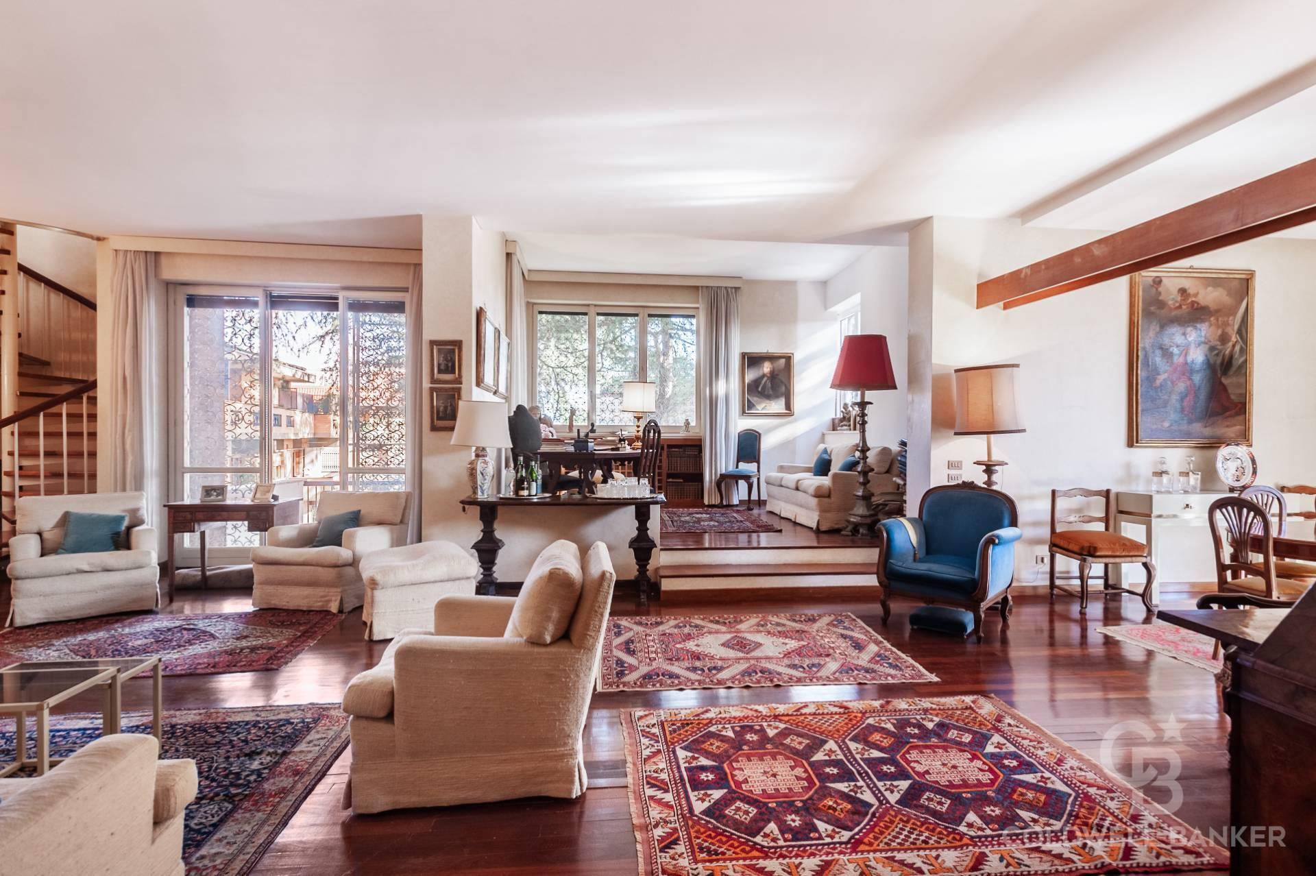 Via Ronciglione 12 – Nel condominio più esclusivo della zona, con piscina, parco, campo da tennis, portineria e guardiania notturna, abbiamo il piacere di proporre in vendita un attico e superattico semplicemente irripetibile.
