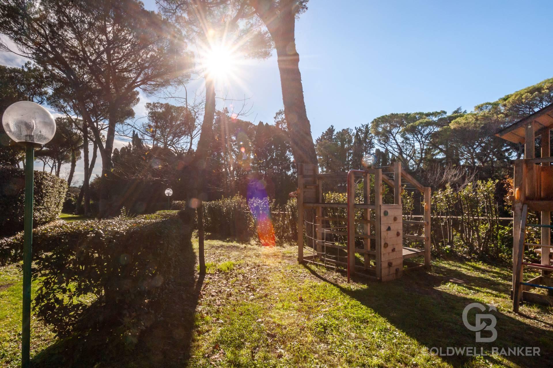 Il suo parco ben curato e protetto sarà il luogo dove lasciar giocare i propri figli, mentre ci si dedica al sole fra nuotate in piscina e partite di tennis con gli amici.