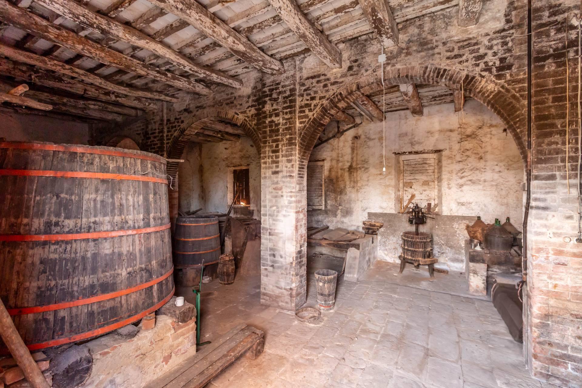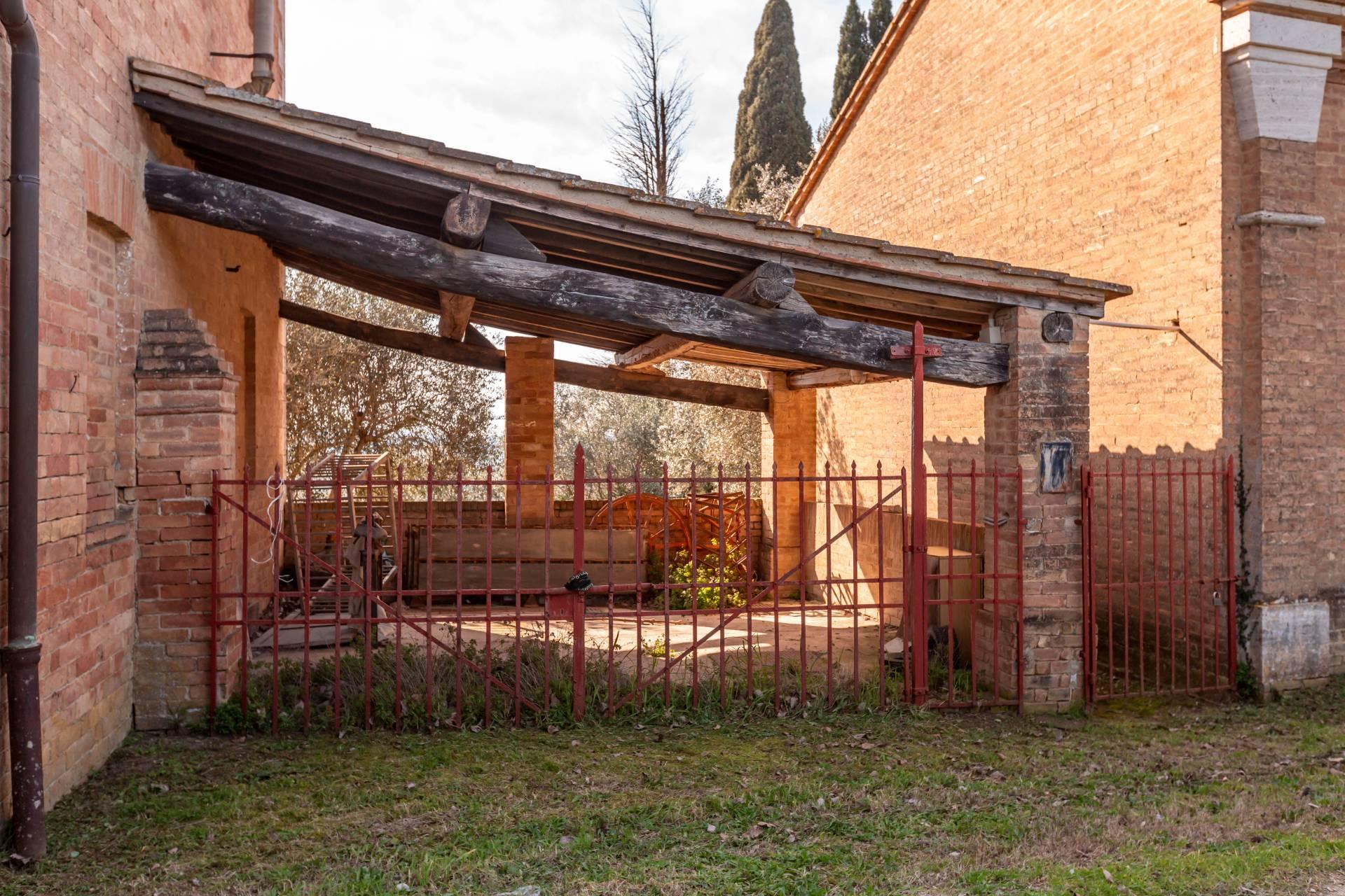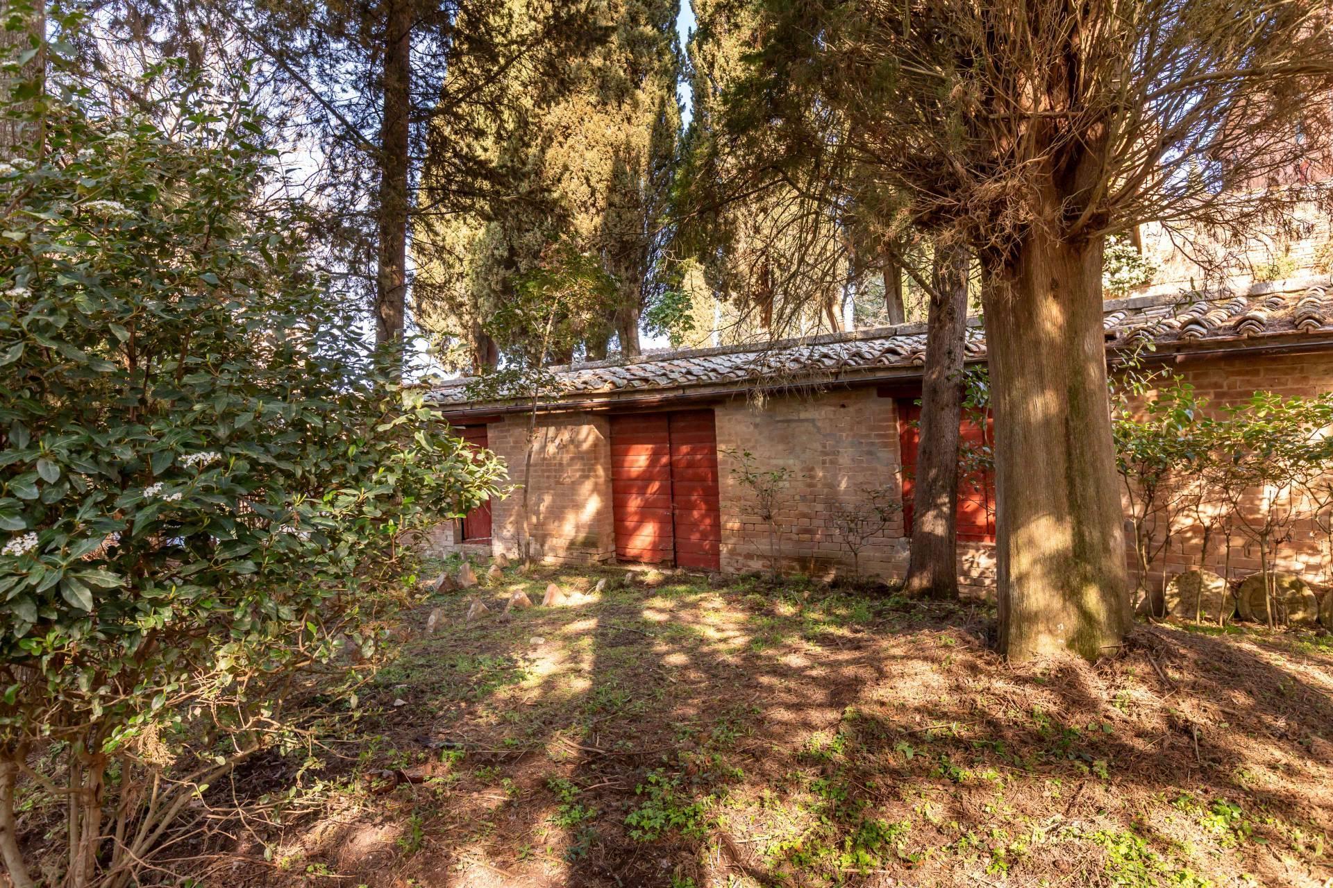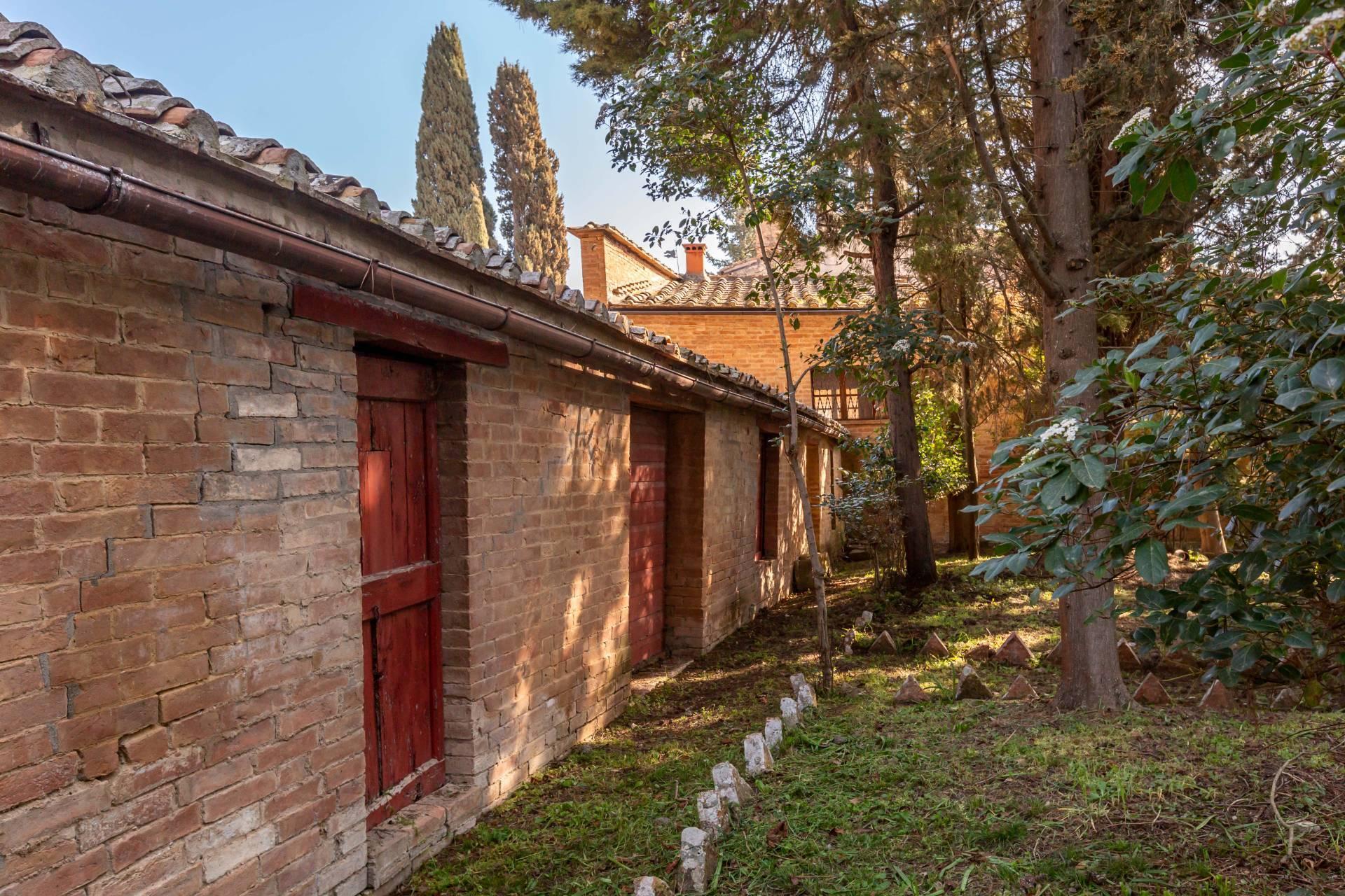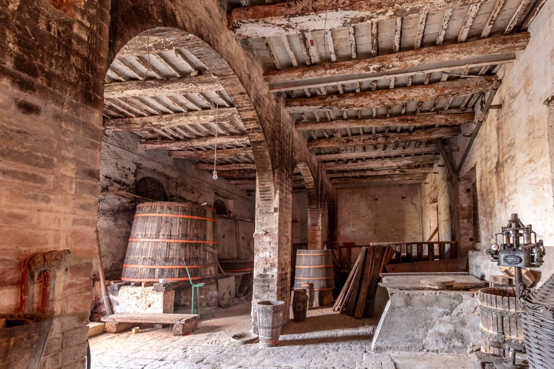 ASCIANO (SI) – A poca distanza dal centro abitato, nel suggestivo paesaggio delle “Crete senesi”, in posizione dominante e panoramica all’interno di un magnifico territorio vallivo e collinare che cambia colore al variare della stagione, abbiamo il piacere di proporre in vendita un complesso immobiliare di considerevoli dimensioni. Estesa su una superficie di circa 120 ettari di terreno, la proprietà comprende una costruzione principale ed una serie di altri distinti casali e fabbricati, dislocati lungo la via provinciale, per una superficie coperta complessiva di oltre 4.000mq. Il più importante dei quali facente parte di un borgo edificato in epoca rinascimentale ed appartenuto ad una nobile famiglia senese, dalla quale ha preso il nome. Nel primo edificio troviamo due grandi appartamenti attigui posti al piano primo, accessibili da scale indipendenti e ciascuno collegato direttamente alle rispettive torrette; al piano inferiore un grandissimo ambiente, destinato a quella che era l’antica “vinaia”, con soffitti alti 6mt. e spazi di generose dimensioni da destinare a qualunque altro diverso progetto abitativo. Un secondo edificio subito accanto, nel quale troviamo diversi annessi tecnici, tra i quali la grandissima autorimessa destinata ai mezzi agricoli, anche questa con soffitti molto alti e travi in castagno a vista. Merita infine un cenno a parte il favoloso giardino sul quale la costruzione si affaccia, uno dei pochi giardini di interesse storico culturale posto a tutela delle belle arti, oltre cui si scorge il panorama ricco di colline verdi e viali di cipressi, tipici di questa parte della Toscana.
