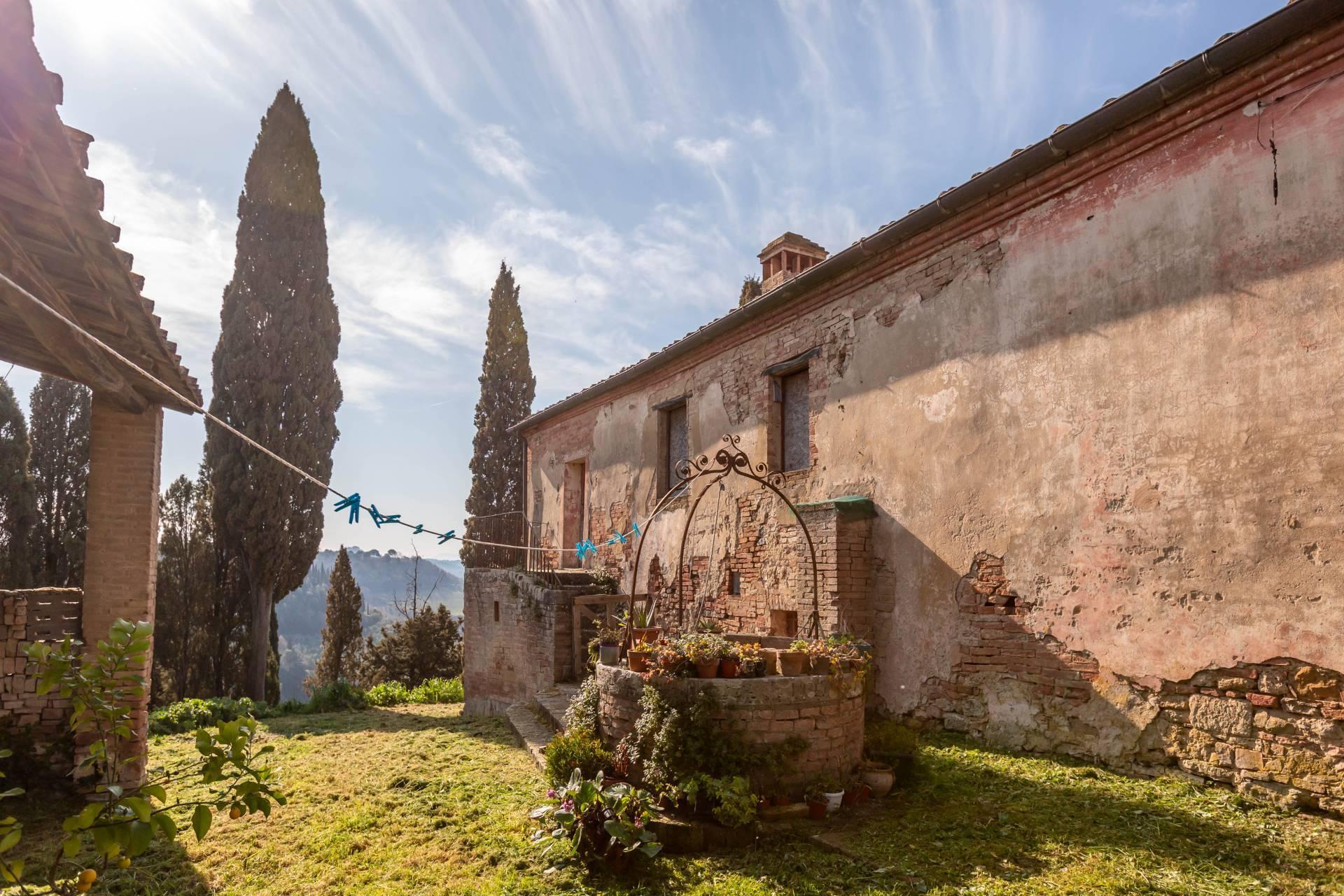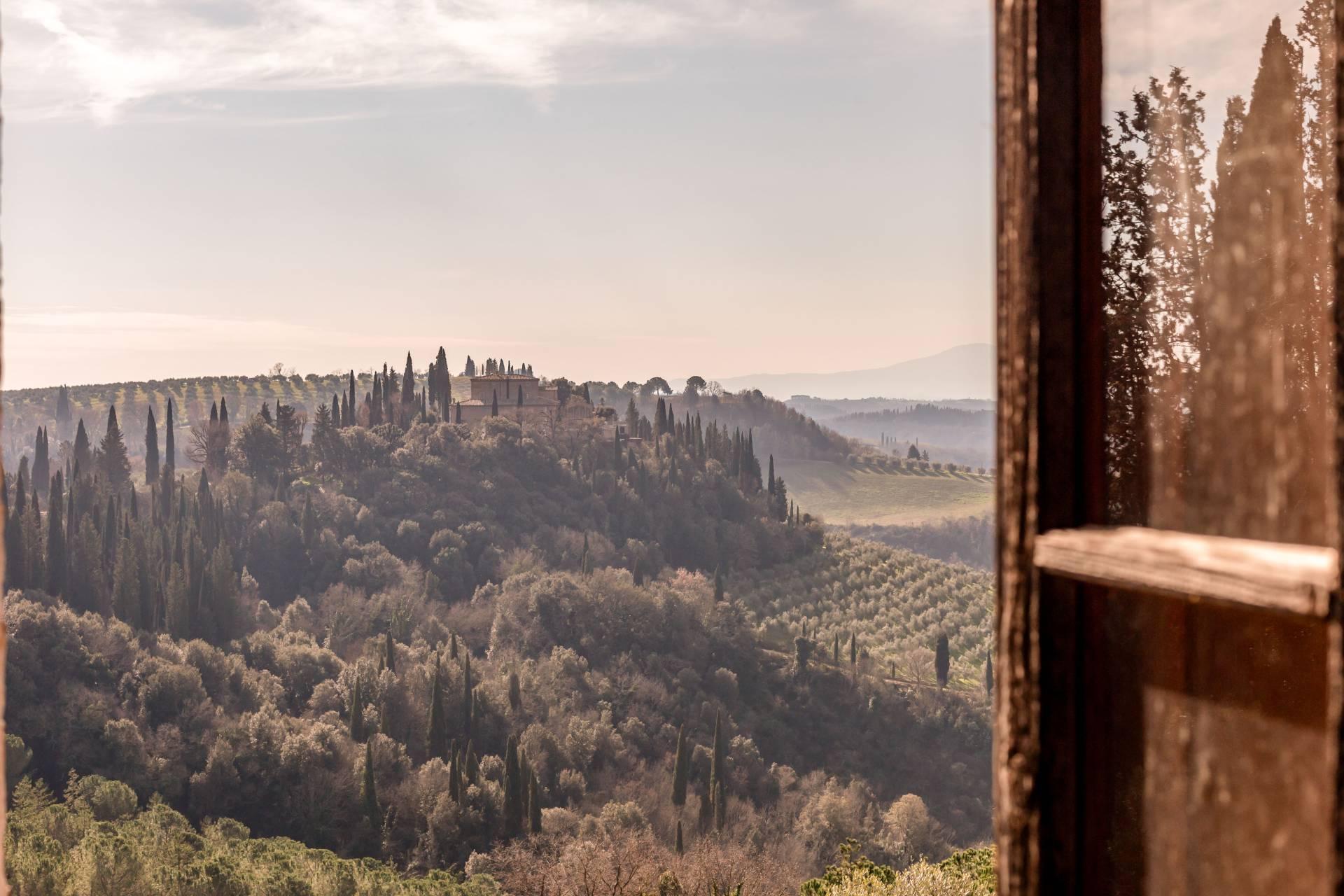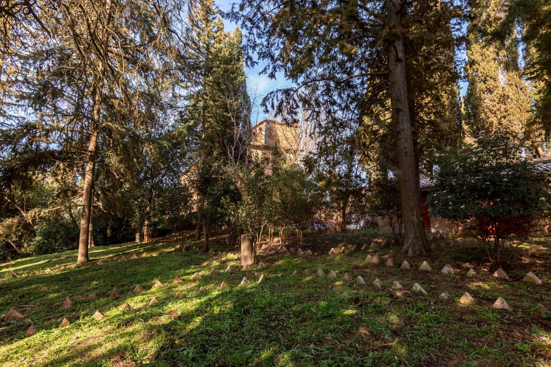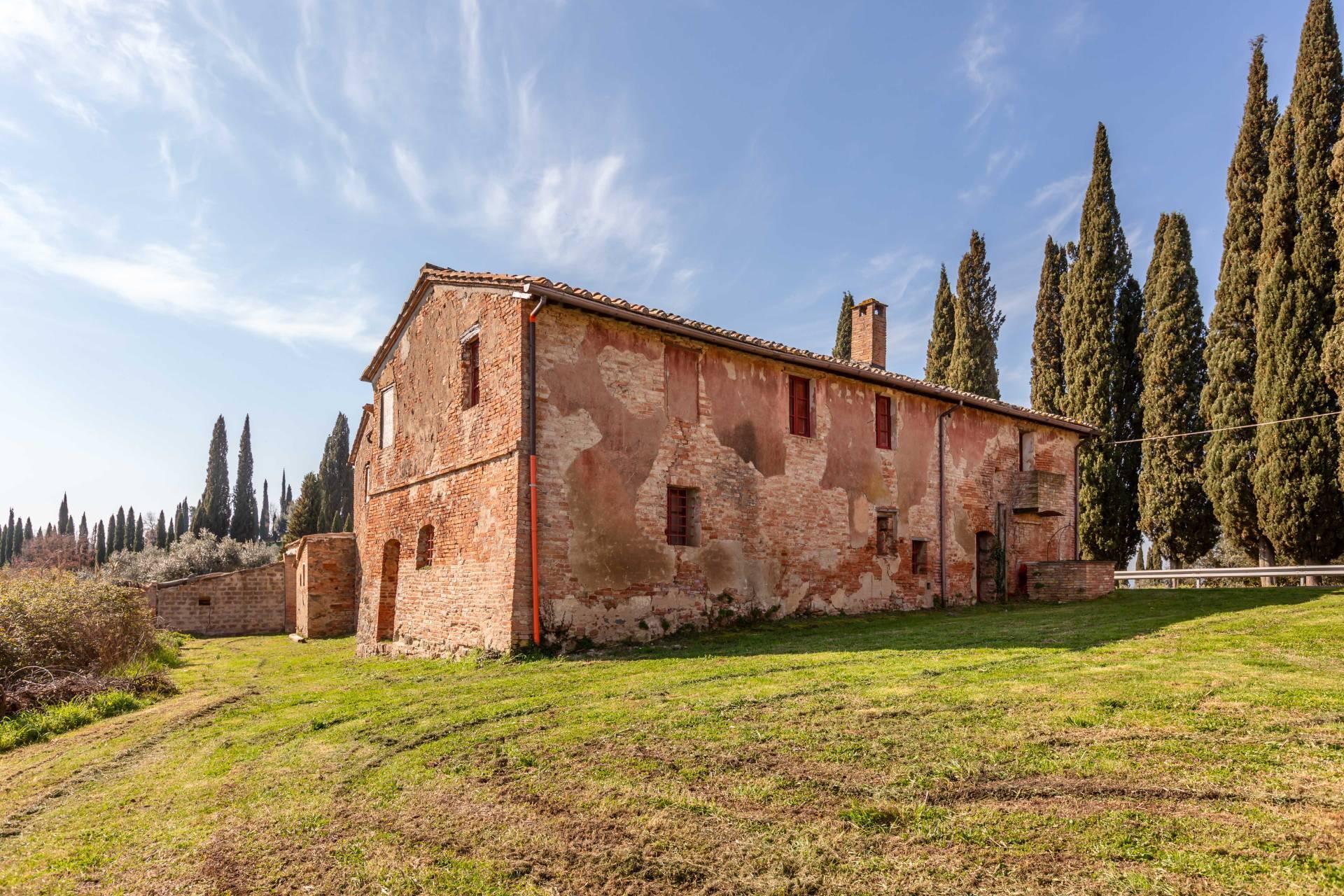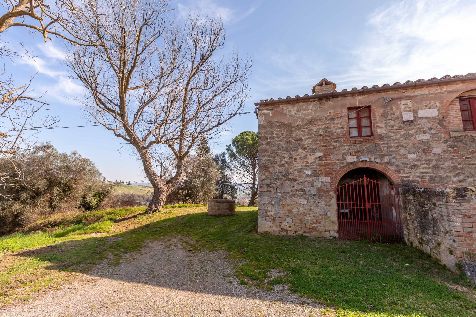 ASCIANO (SI) – A poca distanza dal centro abitato, nel suggestivo paesaggio delle “Crete senesi”, in posizione dominante e panoramica all’interno di un magnifico territorio vallivo e collinare che cambia colore al variare della stagione, abbiamo il piacere di proporre in vendita un complesso immobiliare di considerevoli dimensioni. Estesa su una superficie di circa 120 ettari di terreno, la proprietà comprende una costruzione principale ed una serie di altri distinti casali e fabbricati, dislocati lungo la via provinciale, per una superficie coperta complessiva di oltre 4.000mq. Il più importante dei quali facente parte di un borgo edificato in epoca rinascimentale ed appartenuto ad una nobile famiglia senese, dalla quale ha preso il nome. Nel primo edificio troviamo due grandi appartamenti attigui posti al piano primo, accessibili da scale indipendenti e ciascuno collegato direttamente alle rispettive torrette; al piano inferiore un grandissimo ambiente, destinato a quella che era l’antica “vinaia”, con soffitti alti 6mt. e spazi di generose dimensioni da destinare a qualunque altro diverso progetto abitativo. Un secondo edificio subito accanto, nel quale troviamo diversi annessi tecnici, tra i quali la grandissima autorimessa destinata ai mezzi agricoli, anche questa con soffitti molto alti e travi in castagno a vista. Merita infine un cenno a parte il favoloso giardino sul quale la costruzione si affaccia, uno dei pochi giardini di interesse storico culturale posto a tutela delle belle arti, oltre cui si scorge il panorama ricco di colline verdi e viali di cipressi, tipici di questa parte della Toscana.