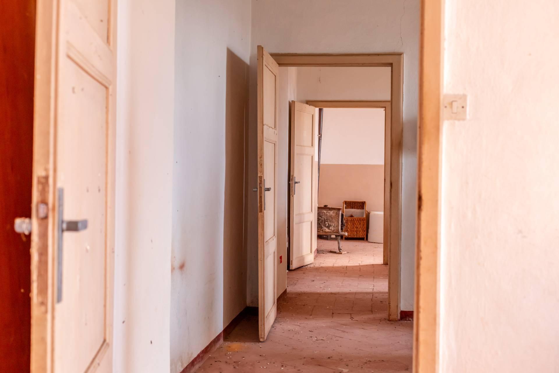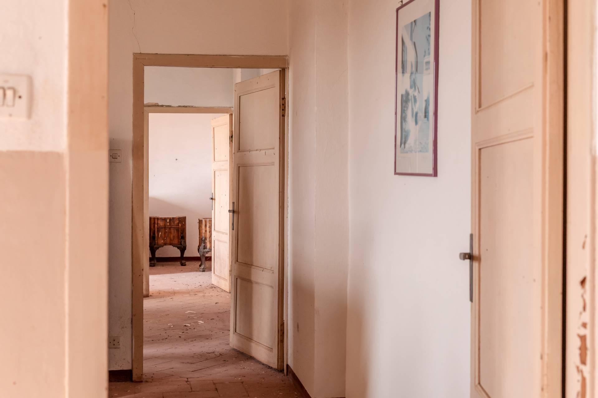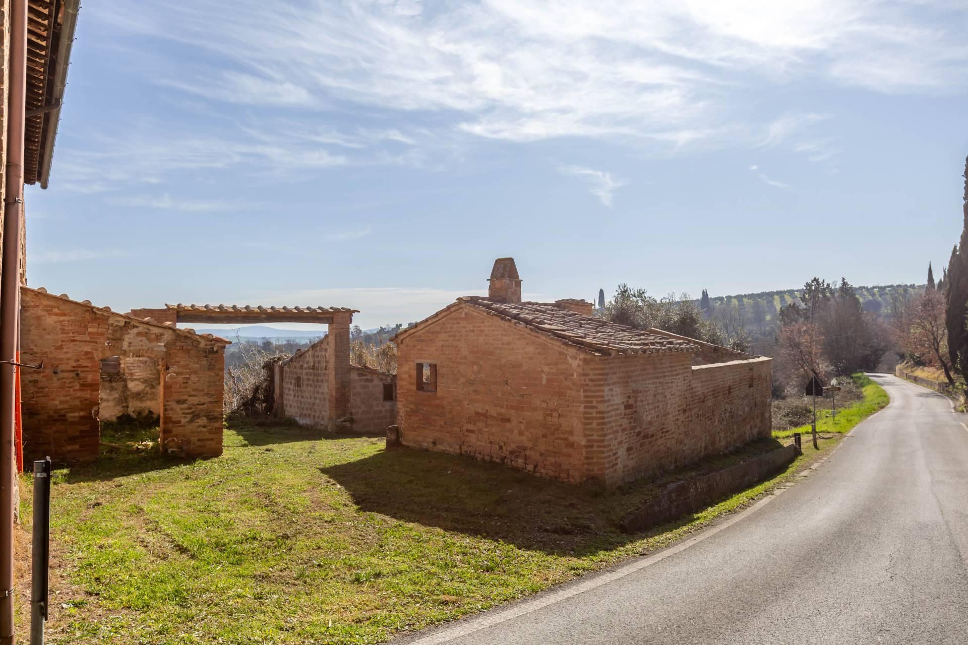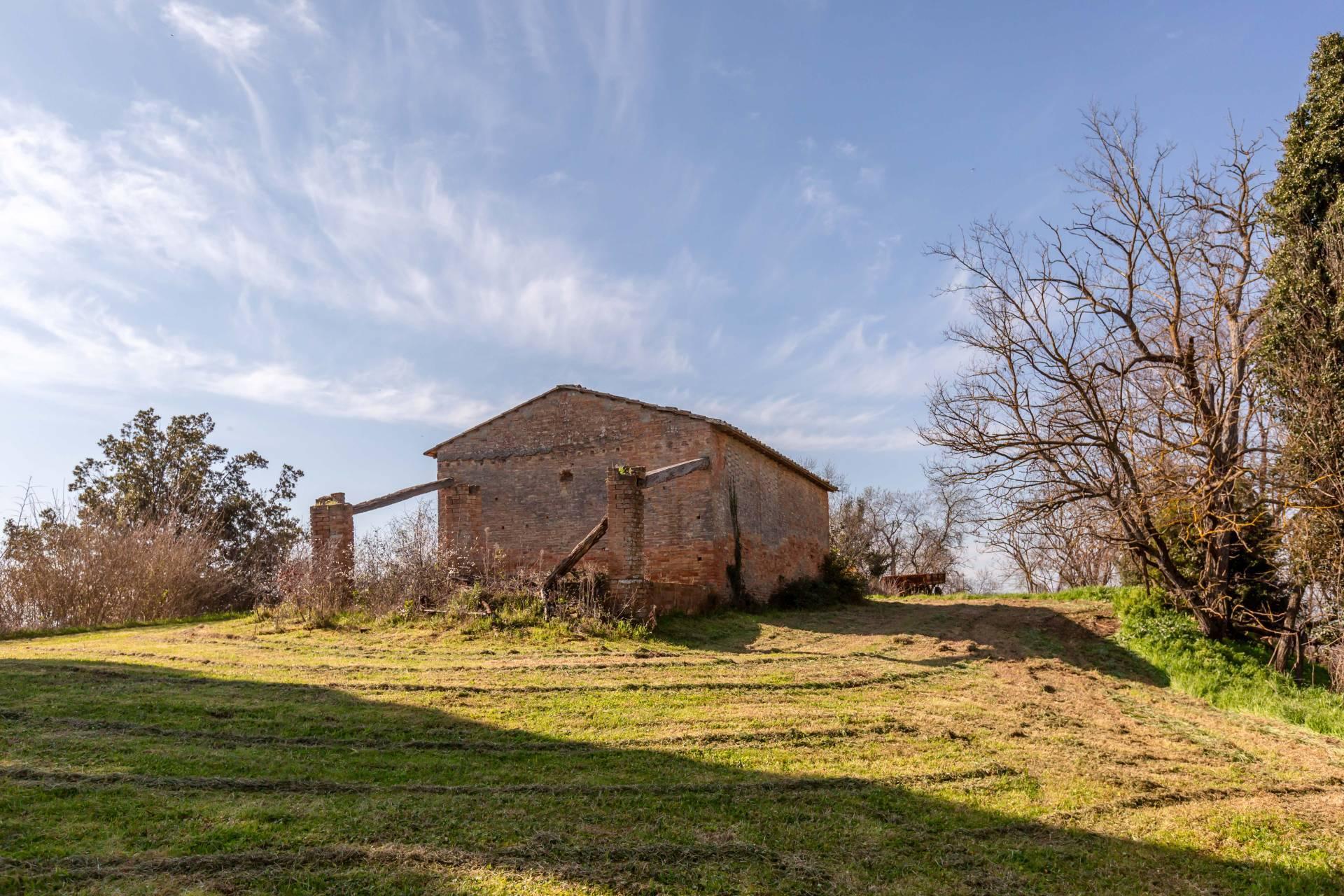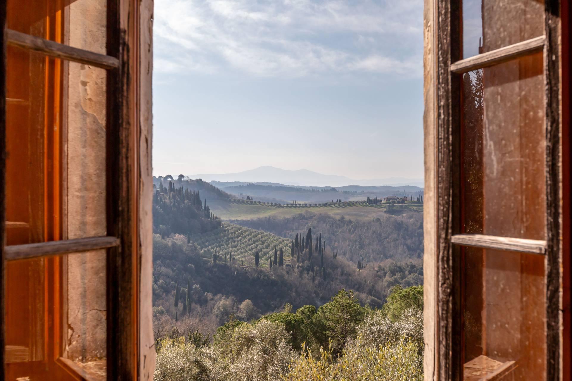 ASCIANO (SI) – A poca distanza dal centro abitato, nel suggestivo paesaggio delle “Crete senesi”, in posizione dominante e panoramica all’interno di un magnifico territorio vallivo e collinare che cambia colore al variare della stagione, abbiamo il piacere di proporre in vendita un complesso immobiliare di considerevoli dimensioni. Estesa su una superficie di circa 120 ettari di terreno, la proprietà comprende una costruzione principale ed una serie di altri distinti casali e fabbricati, dislocati lungo la via provinciale, per una superficie coperta complessiva di oltre 4.000mq. Il più importante dei quali facente parte di un borgo edificato in epoca rinascimentale ed appartenuto ad una nobile famiglia senese, dalla quale ha preso il nome. Nel primo edificio troviamo due grandi appartamenti attigui posti al piano primo, accessibili da scale indipendenti e ciascuno collegato direttamente alle rispettive torrette; al piano inferiore un grandissimo ambiente, destinato a quella che era l’antica “vinaia”, con soffitti alti 6mt. e spazi di generose dimensioni da destinare a qualunque altro diverso progetto abitativo. Un secondo edificio subito accanto, nel quale troviamo diversi annessi tecnici, tra i quali la grandissima autorimessa destinata ai mezzi agricoli, anche questa con soffitti molto alti e travi in castagno a vista. Merita infine un cenno a parte il favoloso giardino sul quale la costruzione si affaccia, uno dei pochi giardini di interesse storico culturale posto a tutela delle belle arti, oltre cui si scorge il panorama ricco di colline verdi e viali di cipressi, tipici di questa parte della Toscana.