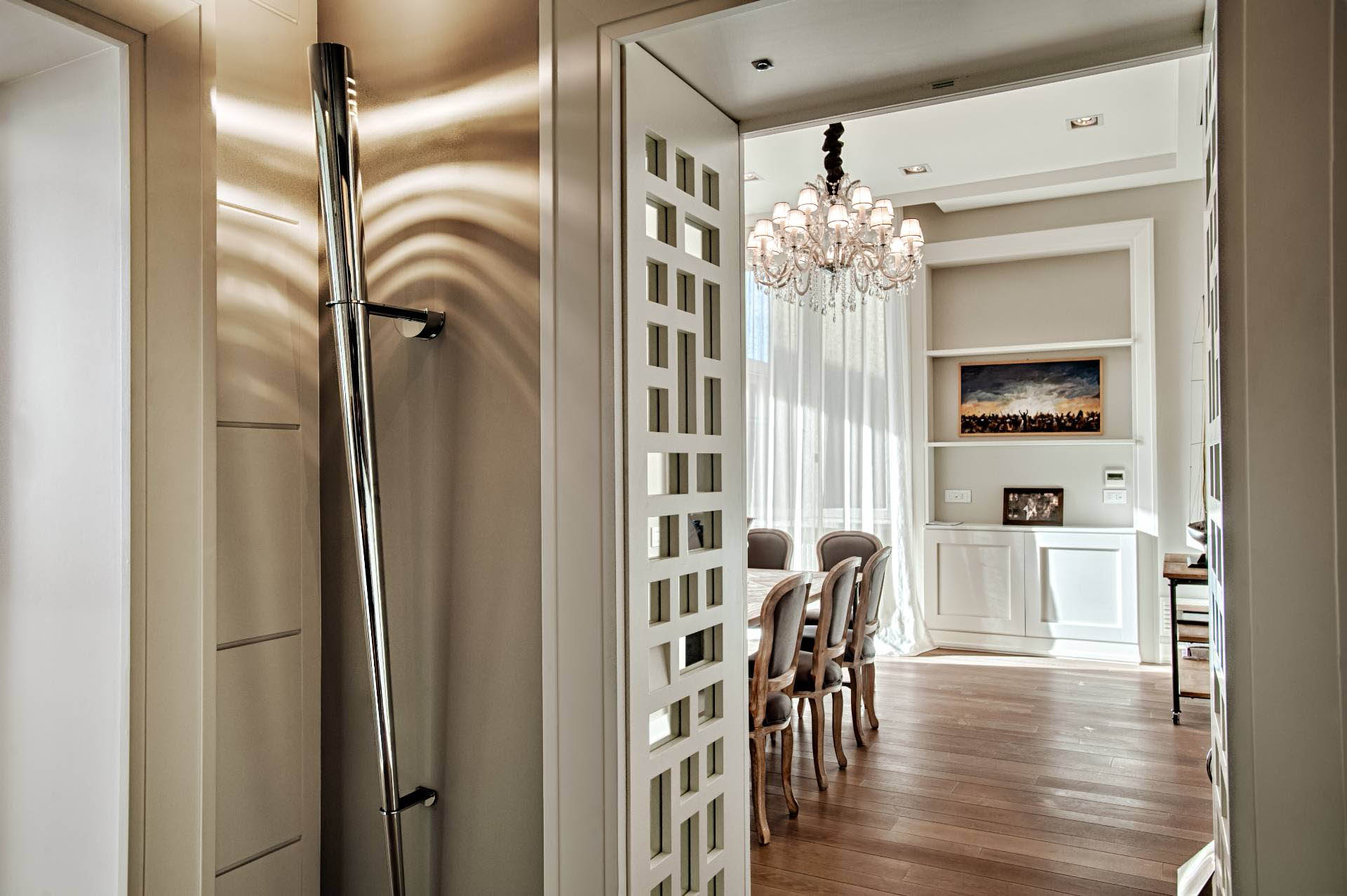 Entrando si è accolti da una monumentale galleria centrale che divide sapientemente la zona giorno dalla zona privata
