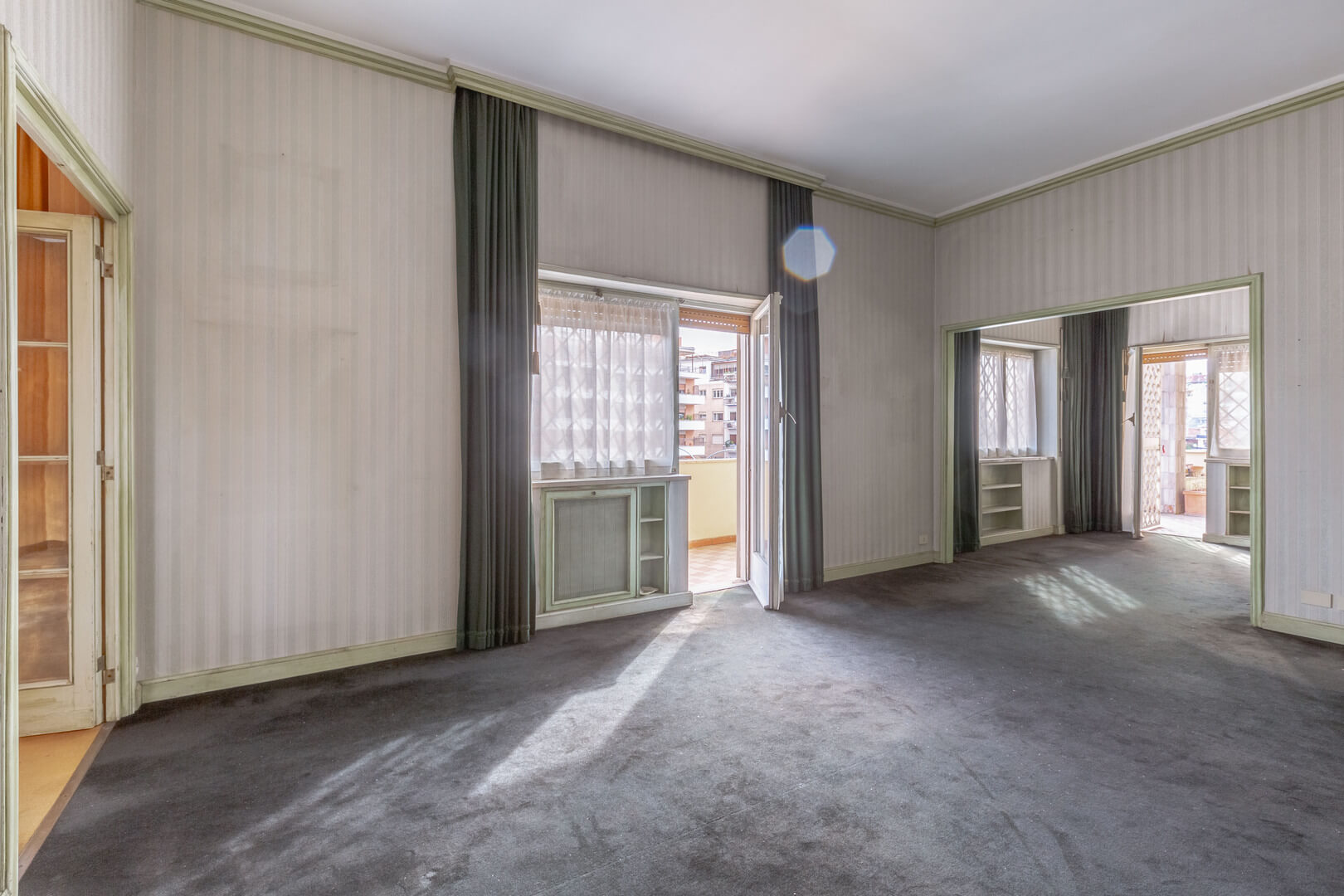 L’appartamento, al terzo piano di una bella palazzina in cortina degli anni sessanta, è composto da: ingresso, salone triplo con zona pranzo con affaccio diretto sul terrazzo, cucina abitabile, tre camere da letto matrimoniali, due bagni, una camera e bagno di servizio. L’immobile è molto luminoso e facilmente divisibile in due unità separate, grazie ad una pianta molto flessibile. Â
