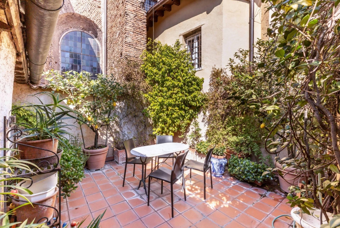 Gli affacci, pieni di luce, sono su Piazza di San Pantaleo, la cui Chiesa diventa non solo uno scorcio incantevole ma parte integrante della proprietà.