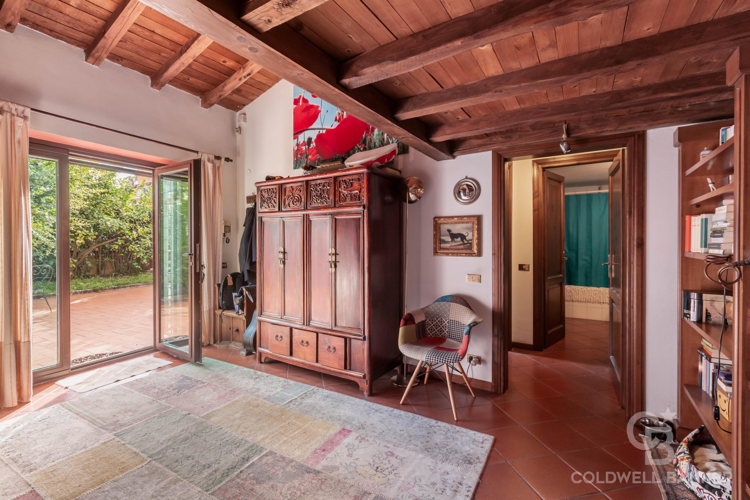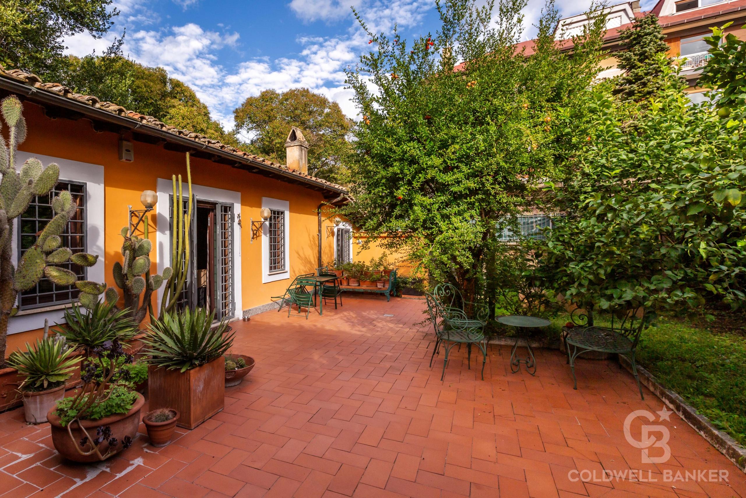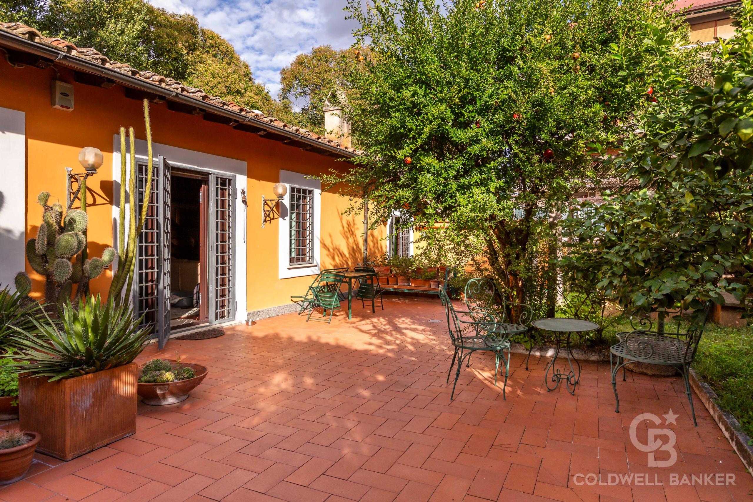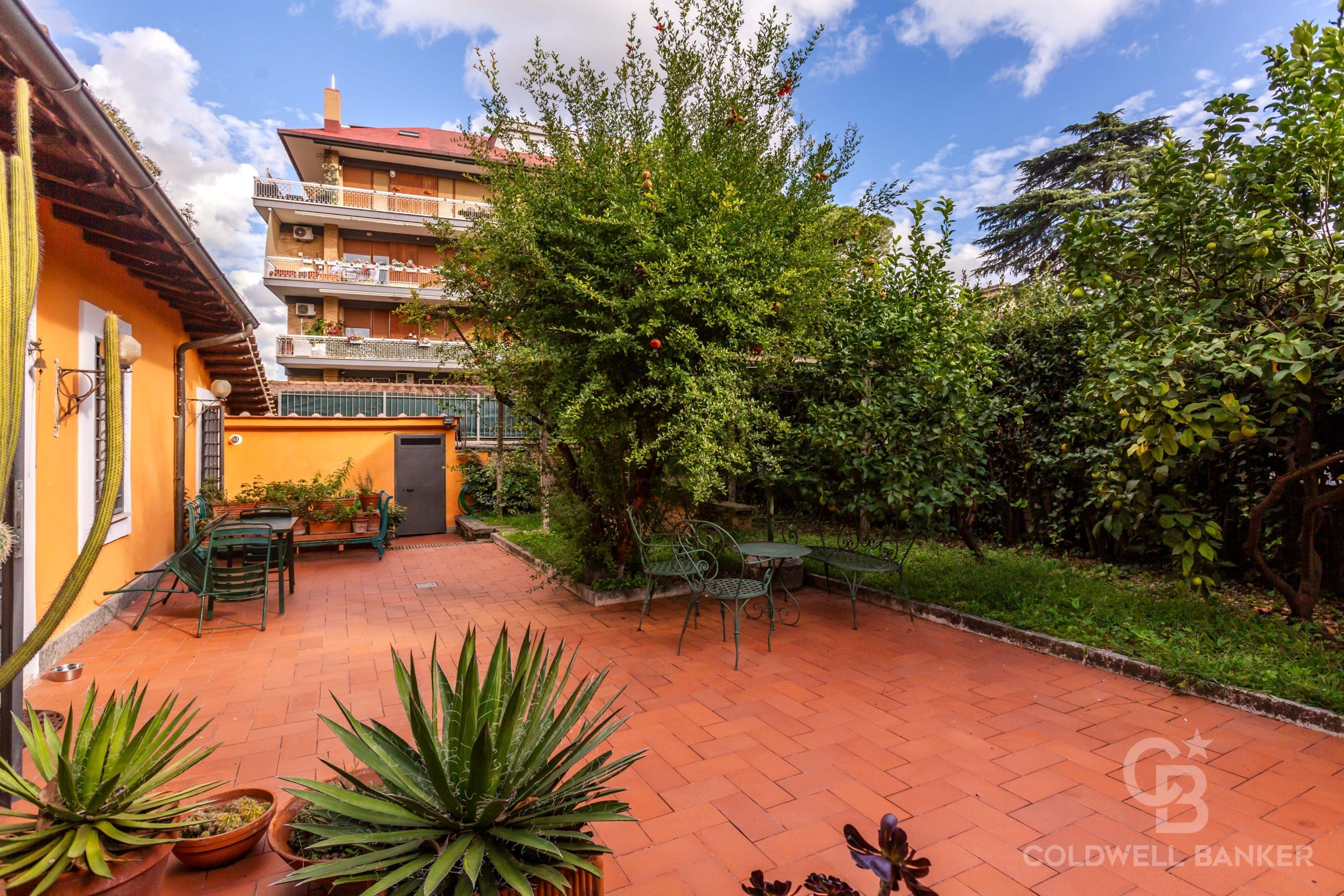 Vigna Clara, Via Francesco Mengotti, in porzione di casale d’epoca, di importante interesse archeologico e storico, proponiamo in Venditaun Appartamento esclusivo ed elegante, di circa 120 mq. catastali, molto silenzioso, nel verde, sito al piano terra, con ampio giardino di circa 130 mq. adornato da alberi di limoni e melograni ed in parte terrazzato, nell’assoluto relax.