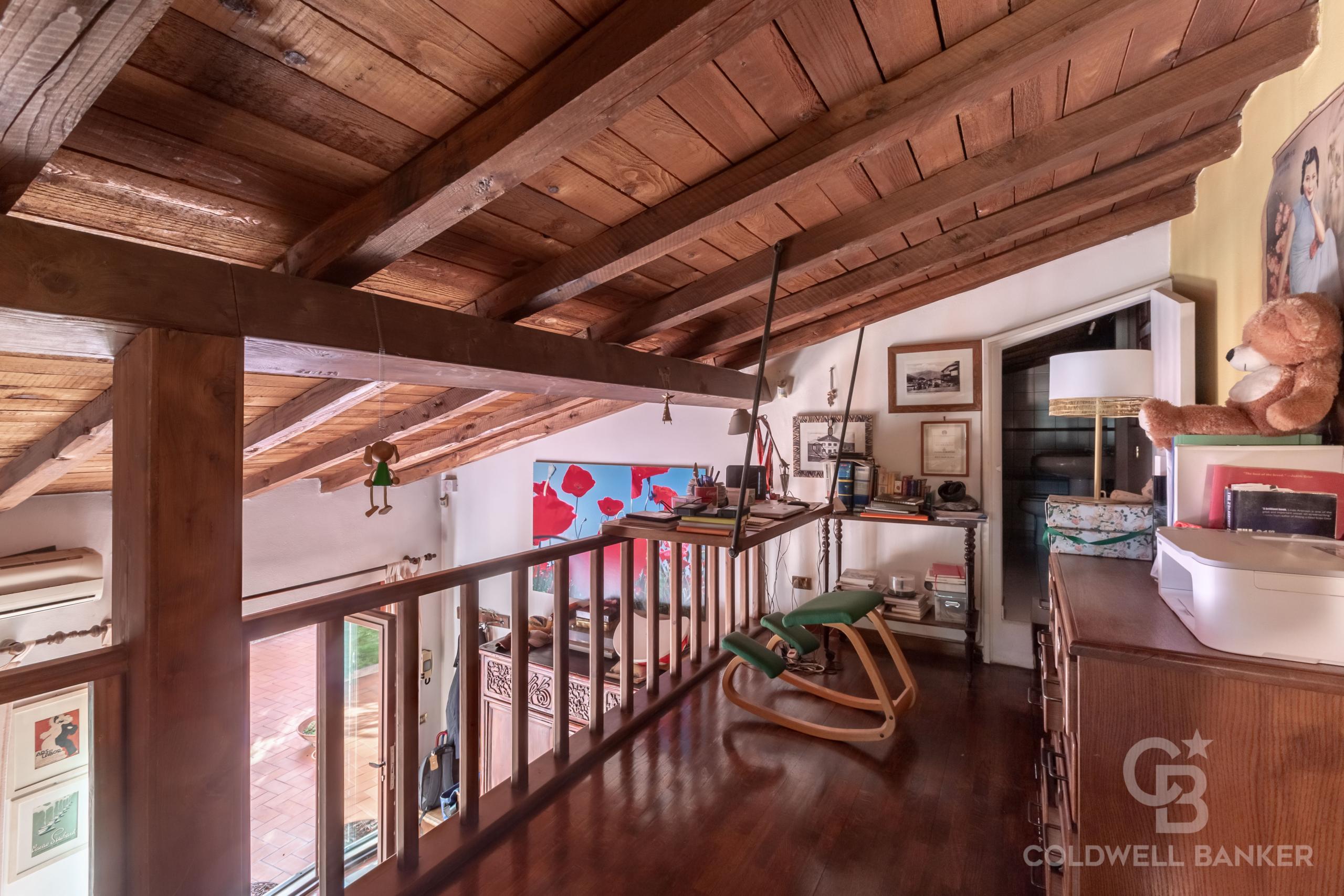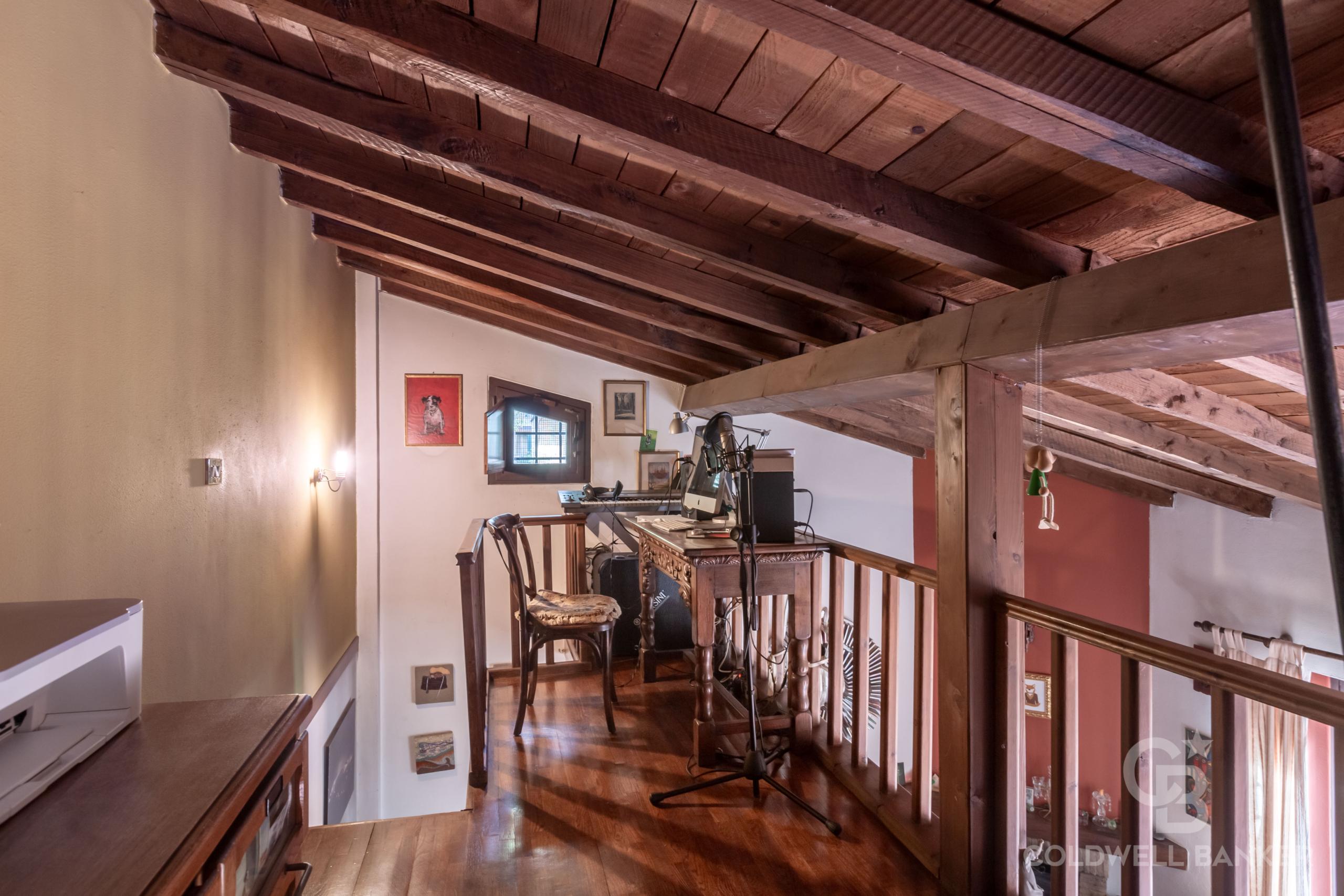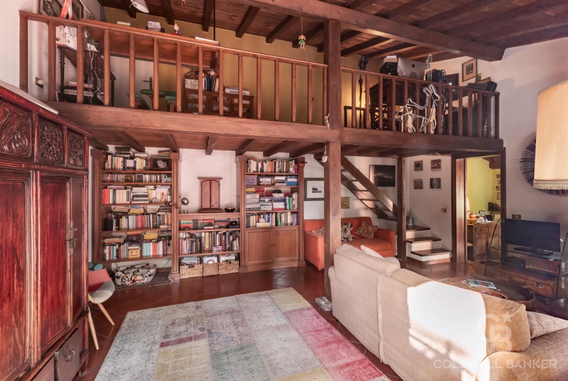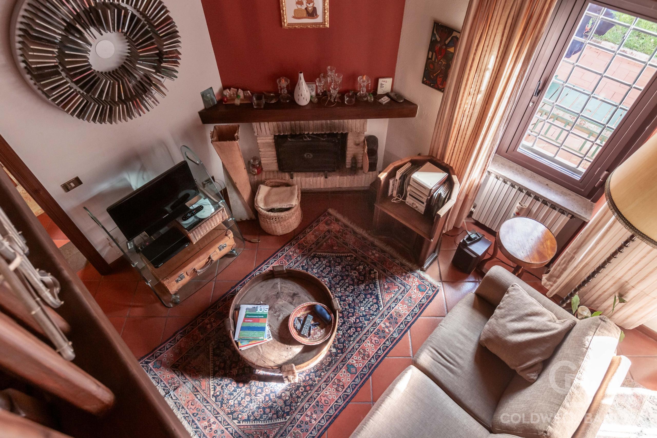 All’Appartamento si accede attraverso un vialetto condominiale, molto ben curato. L’immobile si sviluppa su due livelli: al piano terra si trova un accogliente salone con camino funzionante, ampia cucina abitabile, camera da letto matrimoniale e bagno con vasca; al piano soppalcato (pienamente condonato) si accede attraverso la scala interna e si trova una confortevole zona studio ed un secondo bagno.