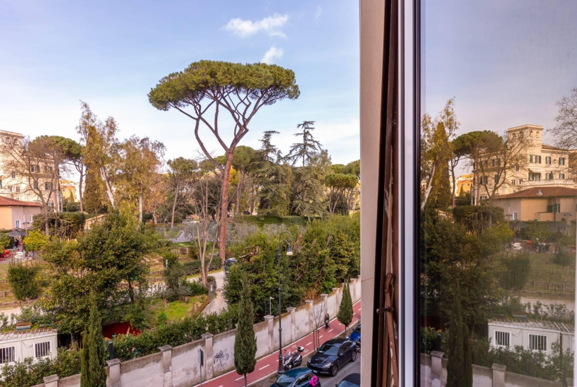 La casa posta al terzo piano, vanta un doppio ingresso, soffitti alti 3,70 metri e una triplice esposizione con panoramici e luminosi affacci sui giardini dell’università Luiss e sui bellissimi palazzi d’epoca adiacenti.