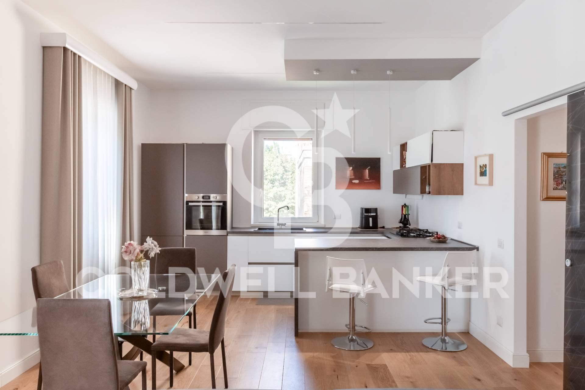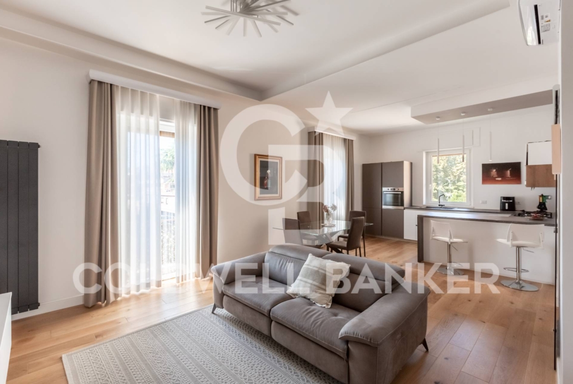 Via Cassia – nel tratto più servito da negozi, adiacente l’ex cinema Ciack, all’interno di un edificio in cortina di soli due piani senza ascensore, il cui accesso è protetto per i residenti da sbarra automatica, abbiamo il piacere di proporre in vendita un delizioso appartamento posto al secondo piano completamente e finemente ristrutturato di ca. 110mq commerciali. L’appartamento si compone al suo interno di un ampio ingresso, che si apre sulla zona di rappresentanza composta da un piacevole soggiorno e cucina a vista con penisola. Un ulteriore disimpegno conduce alla zona notte dove troviamo due camere da letto matrimoniali, due bagni ed un comodo ripostiglio. Possibilità di parcheggiare l’auto all’interno dell’area condominiale antistante l’edificio per i soli residenti. Possibilità inoltre di acquistare a parte un box auto all’interno dello stesso edificio. La particolare luminosità, garantita durante tutte le ore del giorno da un’eccellente esposizione e la regolare distribuzione degli ambienti, fanno di questa proposta un’ottima soluzione per chi desidera una casa pronta da vivere, in una zona molto commerciale in prossimità di tutti i servizi.