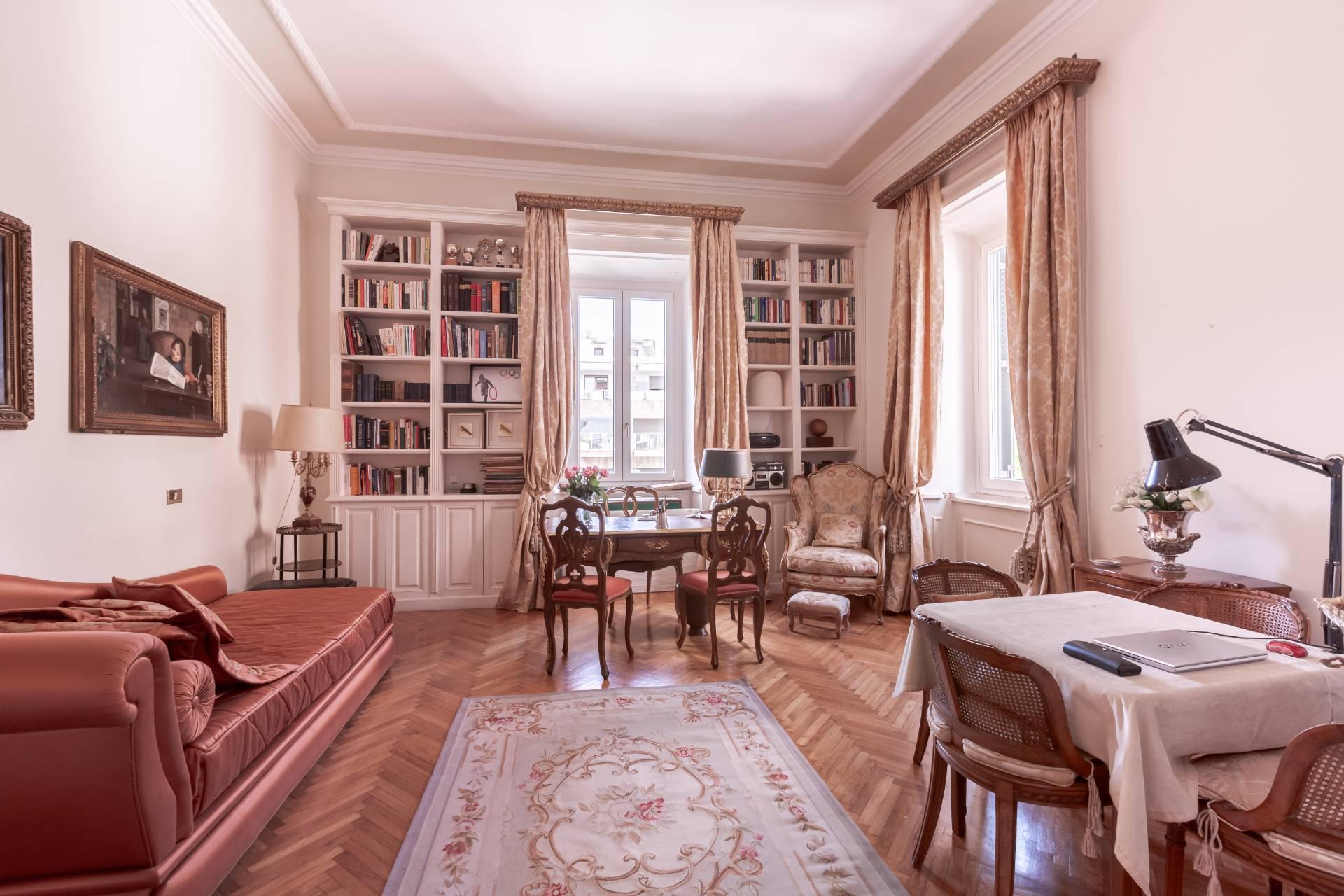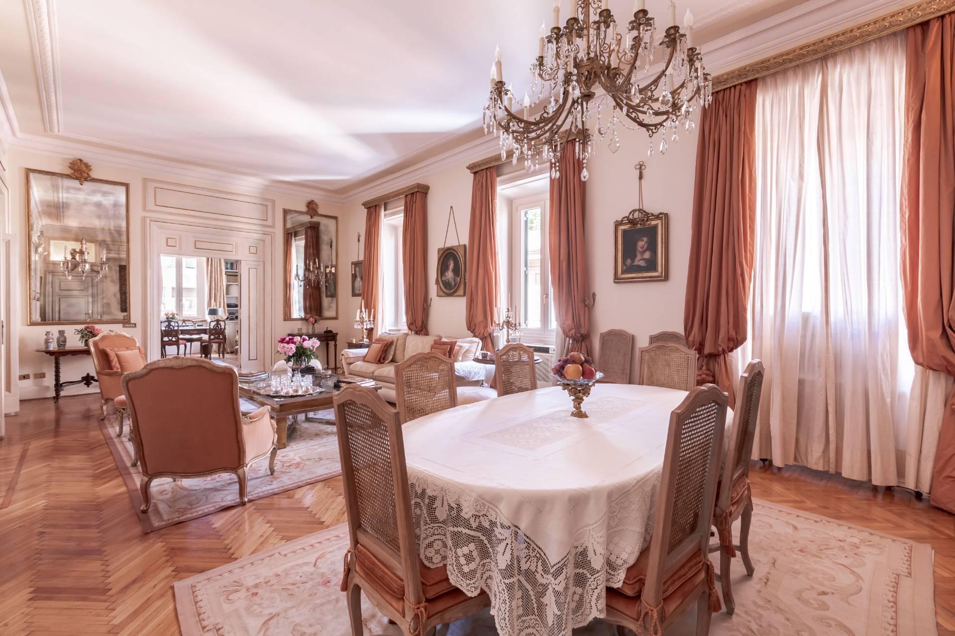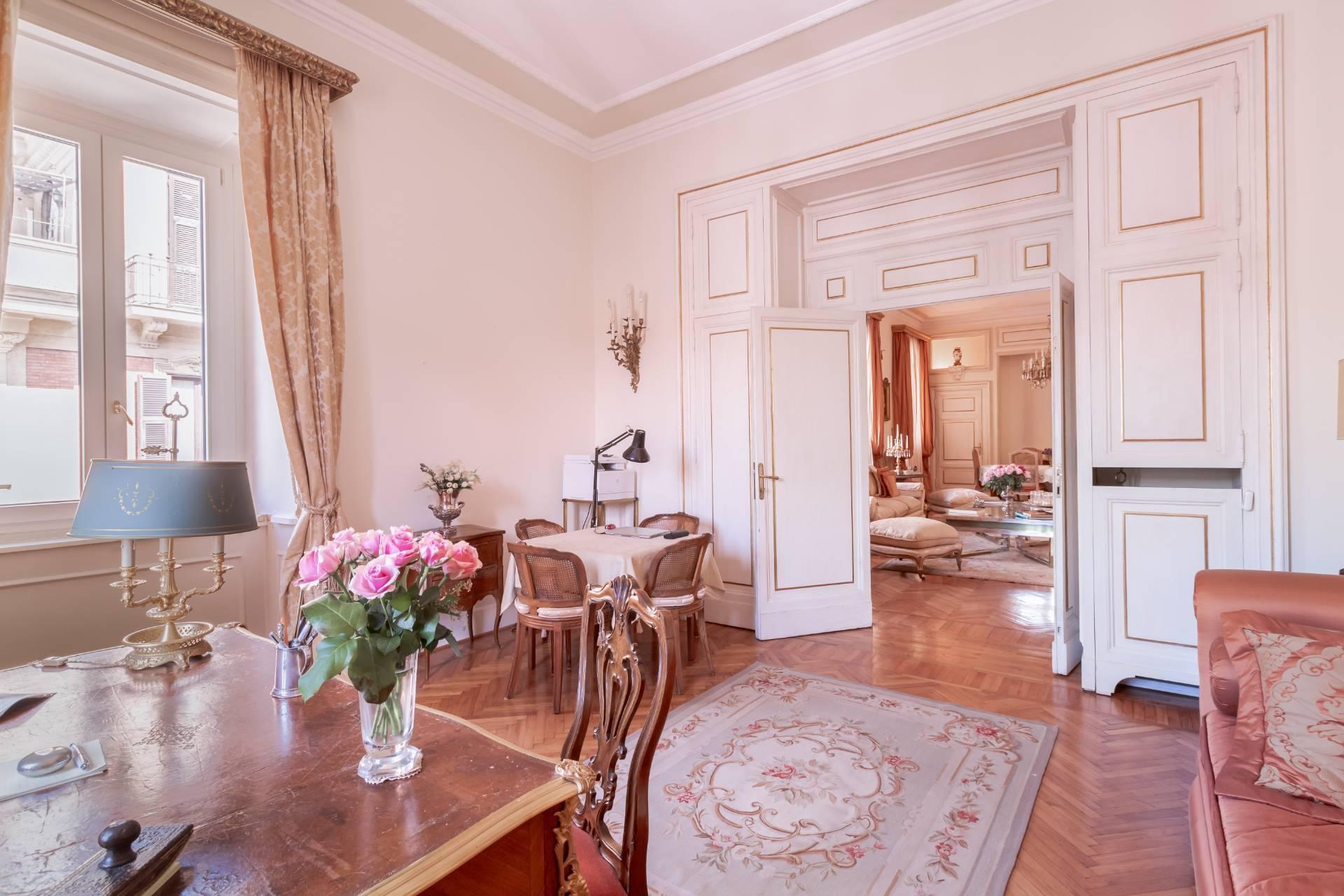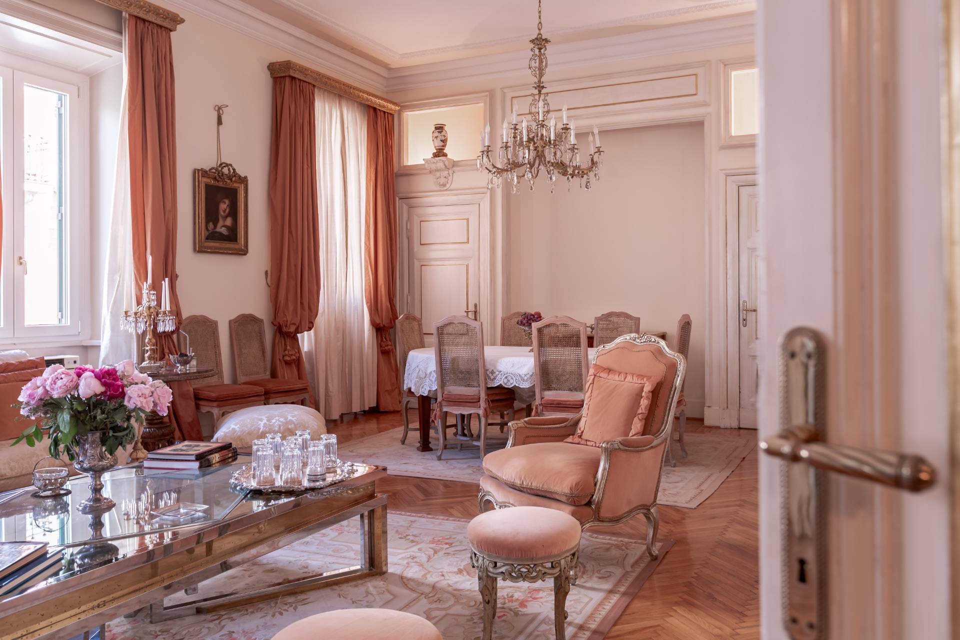 A pochi passi da Villa Borghese e Villa Ada, in uno dei palazzi d’epoca più affascinanti del quartiere Parioli, progettato dell’architetto Giovanni Battista Milani nel 1928, proponiamo al quarto e penultimo piano una splendida dimora di alta rappresentanza.