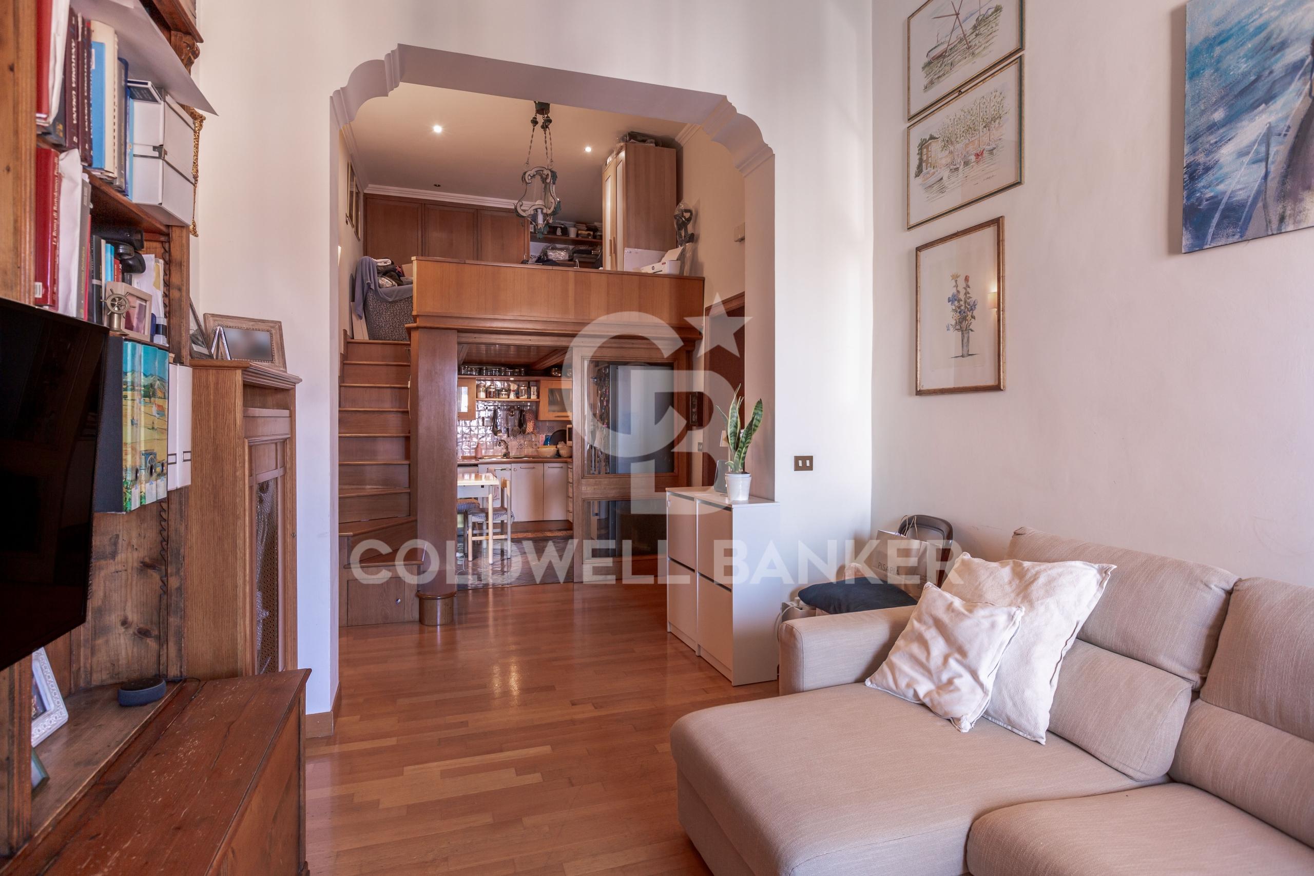 L’appartamento, particolarmente luminoso ed in ottime condizioni di manutenzione, si compone al suo interno di ingresso, ampio salone con cucina a vista, due camere da letto caratterizzate da una distribuzione su due livelli per la presenza di un comodo soppalco, doppi servizi e una pratica zona lavanderia.