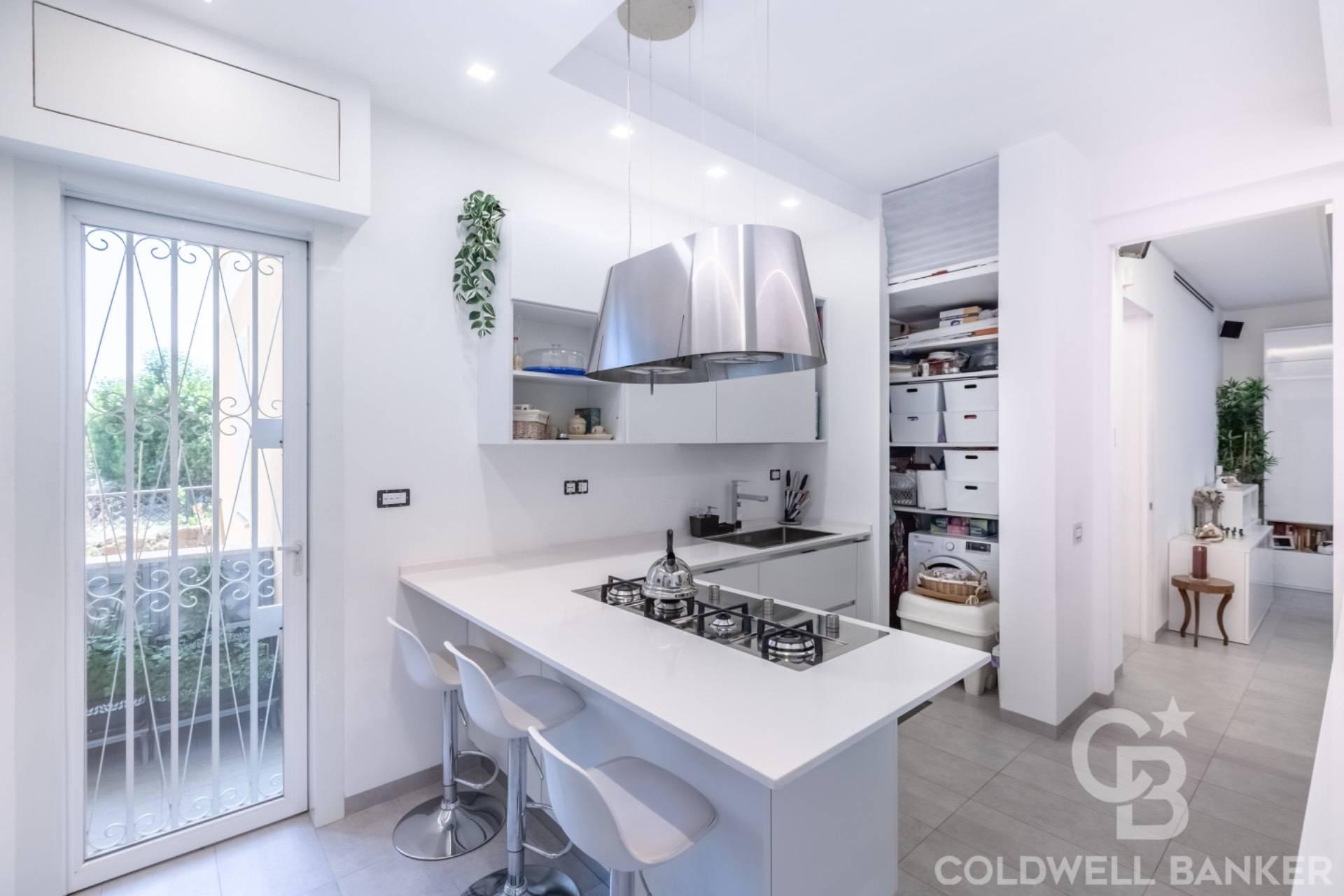 L’immobile, finemente ristrutturato con materiali di pregio, si distingue per gli spazi ampi e razionali e per l’ottima esposizione. La zona giorno si apre su un ingresso accogliente, un soggiorno ampio e luminoso con affaccio su un terrazzo vivibile immerso nel verde, e una cucina comoda e funzionale con accesso a un ulteriore balcone.