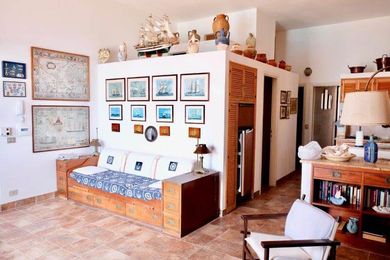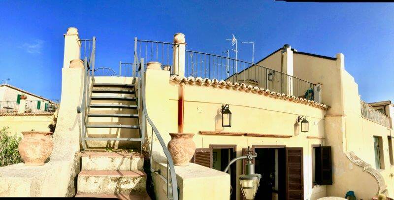 Da un cortile comune si accede con una sola rampa di scale al ballatoio che ci conduce all’ingresso dell’appartamento. Internamente si compone di un comodo soggiorno, una cucina a vista, due camere matrimoniali, una camera singola e due bagni. Impreziosito da due terrazze abitabili a livello con affaccio aperto sul mare, da una delle quali, con comoda scala esterna in muratura, si accede al lastrico solare di copertura di proprietà esclusiva.