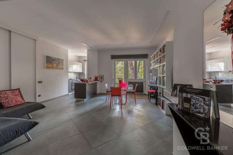 Ristrutturato di recente con materiali di design e con cura dei minimi particolari, l’appartamento si compone internamente di ingresso, un ampio salone con gradevoli affacci nel verde circostante ed accesso diretto al terrazzino abitabile, moderna cucina a vista separata dal salone da tavolo penisola a completare la zona giorno; un comodo disimpegno con eleganti armadi a muro divide la zona notte nella quale troviamo due camere singole servite da un primo bagno, camera padronale con bagno en-suite e spaziosa cabina armadio, dalla quale si accede ad un altro terrazzino dove è collocata la preziosa zona lavanderia.
