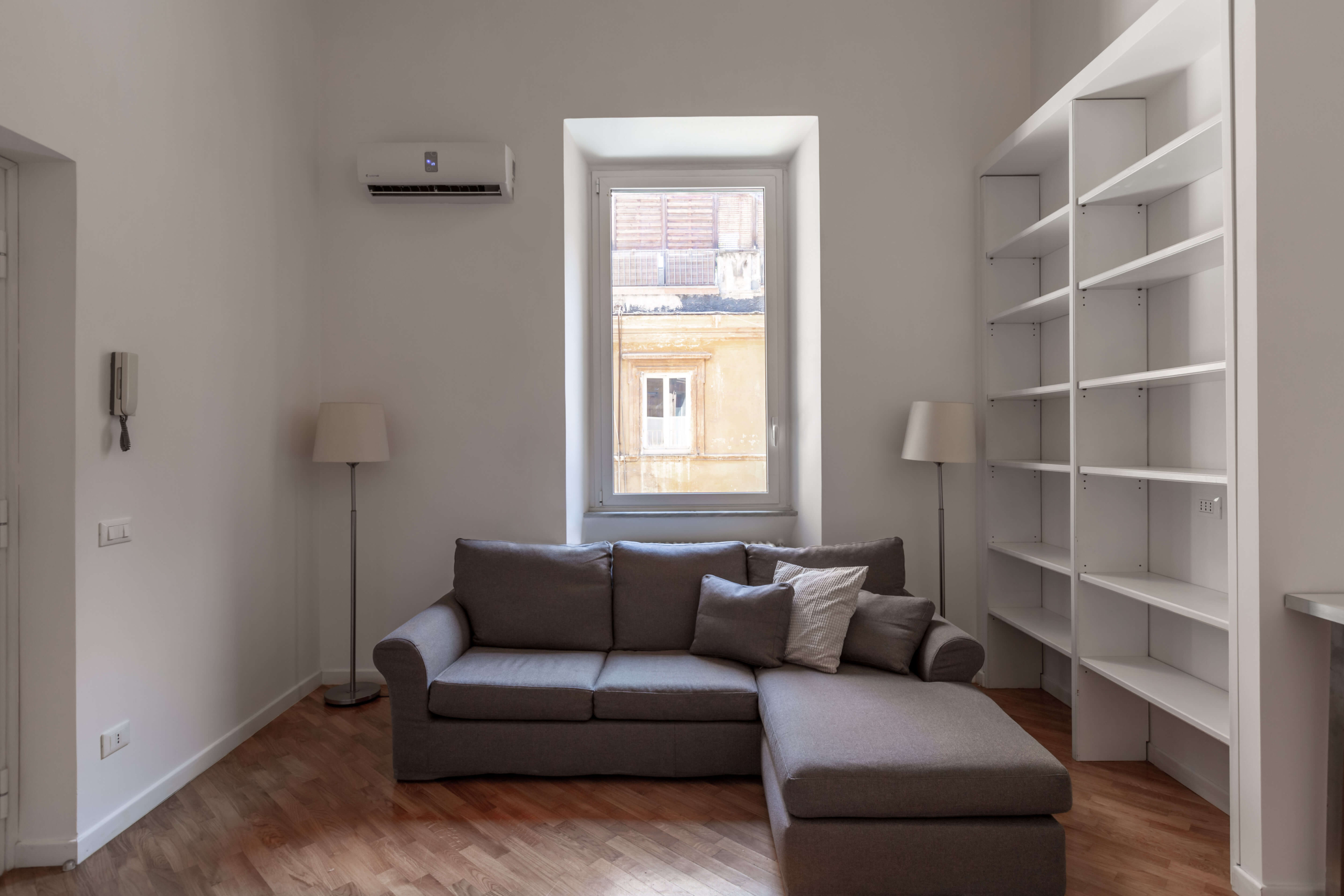 L’appartamento completamente ristrutturato e luminosissimo, si compone di ingresso, soggiorno, cucina completa di elettrodomestici, camera da letto con armadio a parete, un grande bagno, ripostiglio e spazioso soppalco. L’appartamento è rifinito in ogni dettaglio con materiali di pregio quali parquet, arredi fissi, finestre in doppio vetro pvc e condizionatori in ogni ambiente.