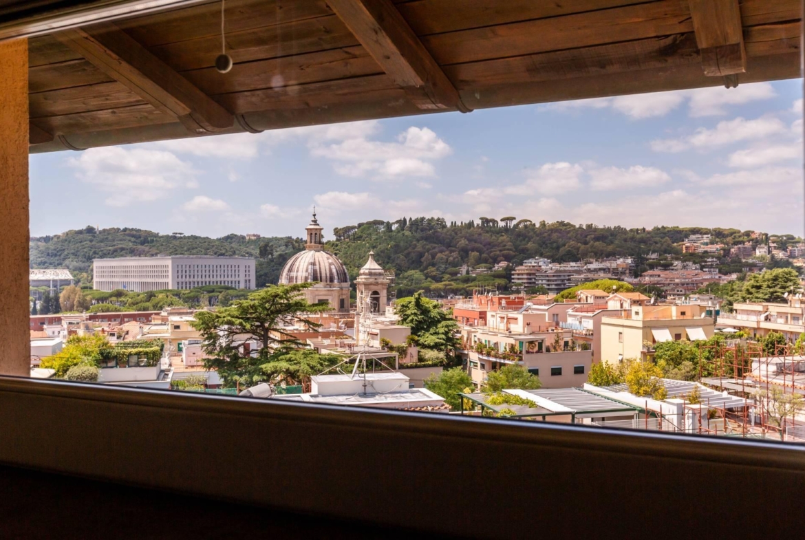 Ponte Milvio – Abbiamo il piacere di proporre in vendita un meraviglioso attico e super attico, con doppio ingresso, all’interno della storica Villa Brasini. Le cinque esclusive terrazze con altana panoramica e la vista che si apre su quattro lati fino ad abbracciare il cupolone di San Pietro, ne fanno un oggetto unico nella capitale. Accediamo al settimo piano, estremamente luminoso, moderno e movimentato nei suoi spazi, attraverso un ascensore privato ad uso esclusivo e dove troviamo un grande salone con camino, la suggestiva sala da pranzo, la grande cucina con la sua zona lavanderia e un bagno di cortesia, tutti con i propri affacci sui bellissimi spazi esterni. La zona notte è composta da una camera matrimoniale con bagno en suite e cabina armadio e un’altra camera da letto matrimoniale anch’essa con bagno en suite e affascinanti viste sul panorama romano. Una scala esterna ci conduce all’altana posta all’ottavo piano, con splendidi affacci sui tetti di Roma.