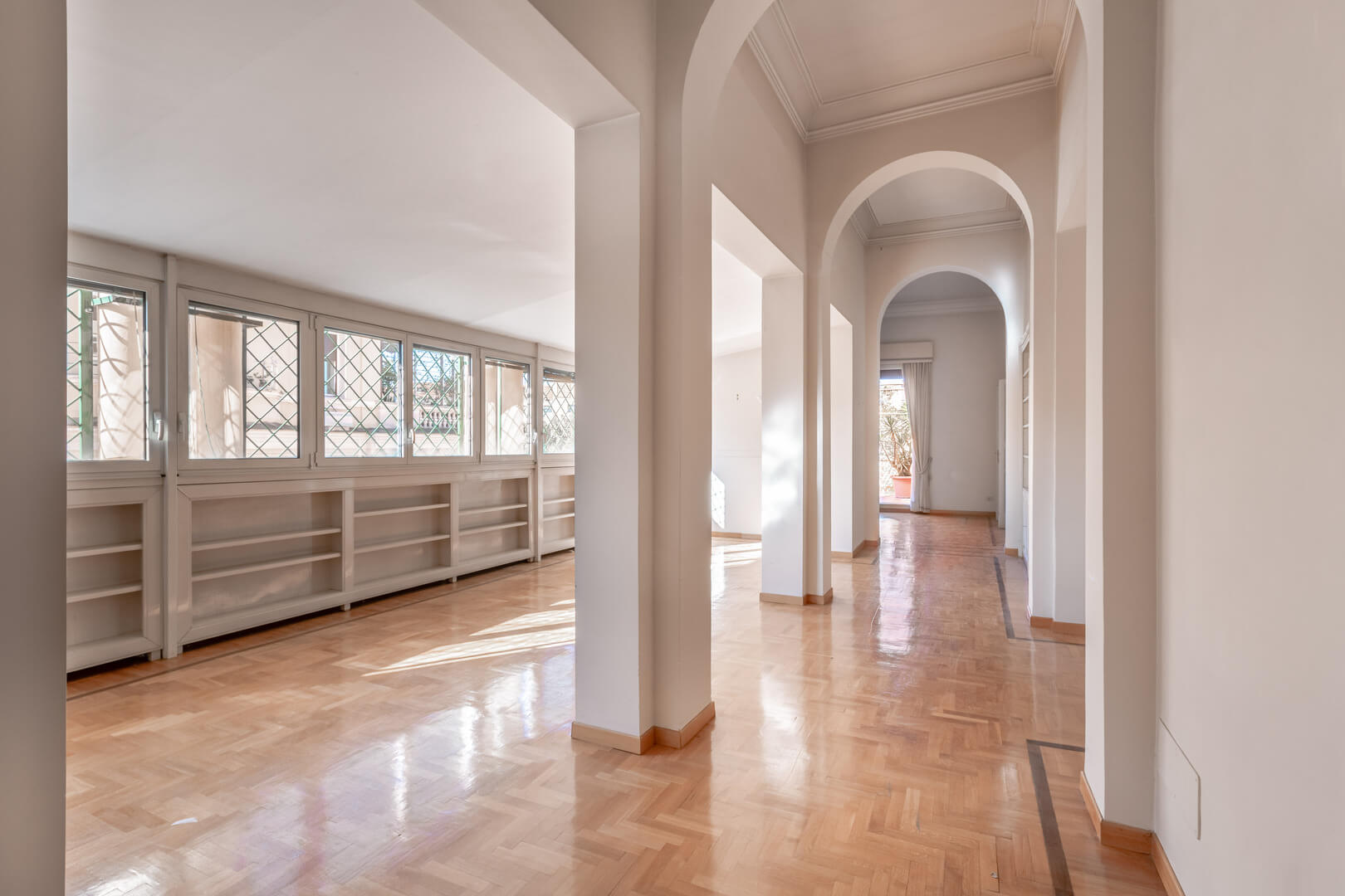 Parioli – Via Panama, Piazza Ungheria- Lussuoso ed elegante attico panoramico su Villa Ada. L’immobile sviluppa una superficie interna di circa 330 mq oltre ad un terrazzo di quasi 40 mq.