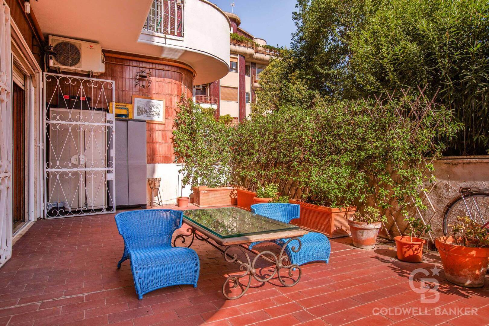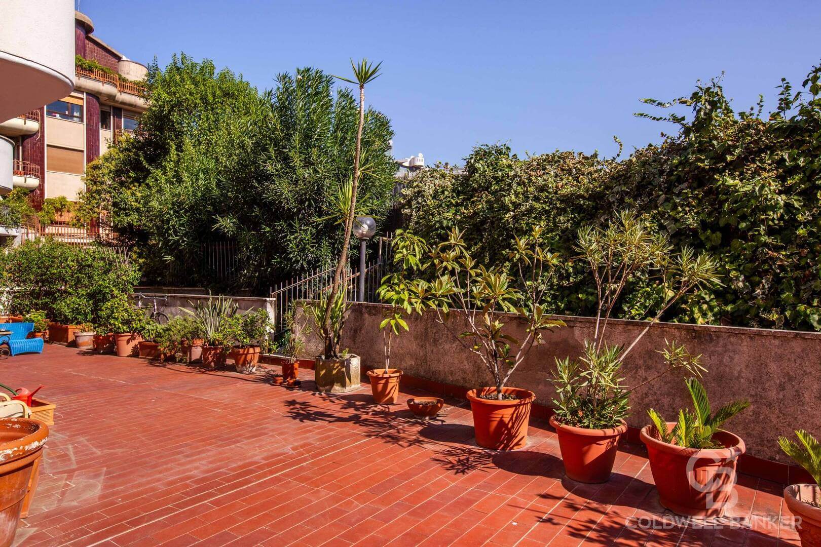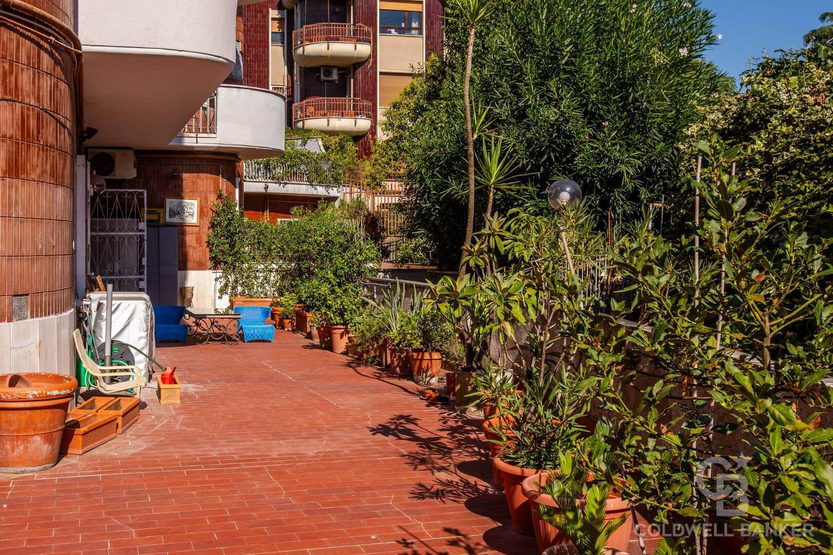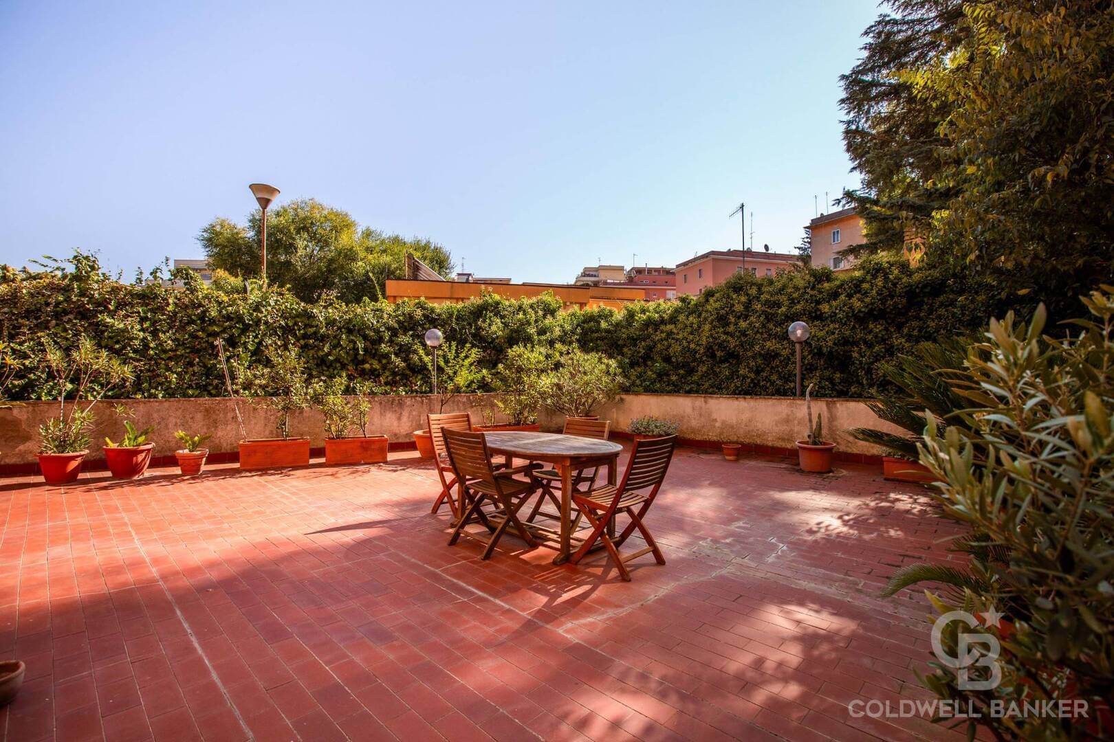 Il giardino terrazzato con zona lavanderia e barbecue, gode di annessa corte di proprietà esclusiva. Il distacco vista cielo, lontano dai palazzi circostanti, è in grado di offrire silenzio, privacy e una grande vivibilità per i proprietari e i loro ospiti.