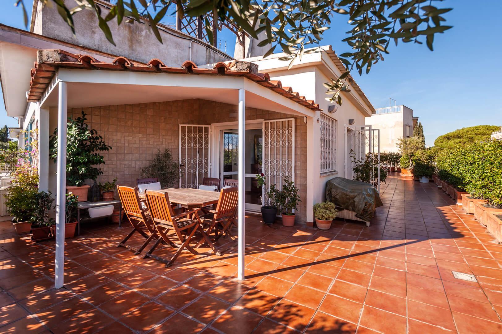Lo straordinario terrazzo principale dona alla casa una impareggiabile opportunità di vivere il clima straordinario di Roma, godendo del panorama sulla Capitale.